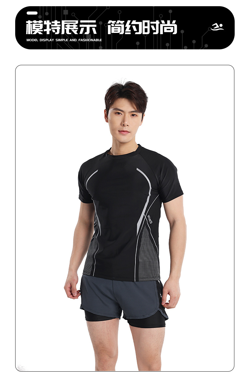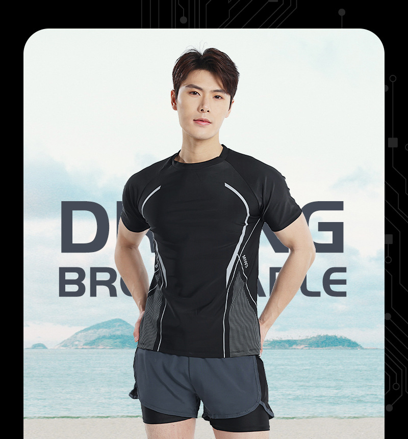 クロスボーダー水着メンズセット2025速乾水泳パンツ露出防止水着スポーツ温泉メンズ半袖