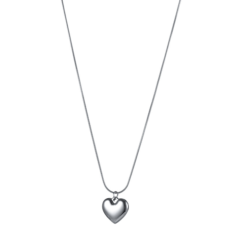 シンプルな立体小愛ネックレス両面桃心鏡面感ハート型鎖鎖日韓ins百合アクセサリー