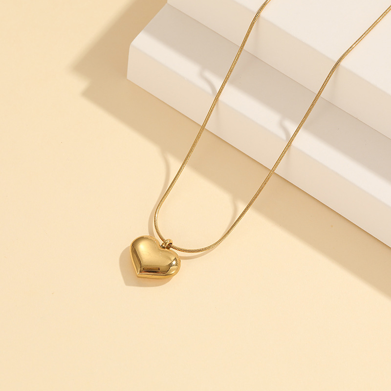 チタン鋼は色が落ちないシンプルな愛の蛇の骨のネックレスの女性の軽い豪華な大衆のデザイン感に合わせてハート型のペンダントの鎖