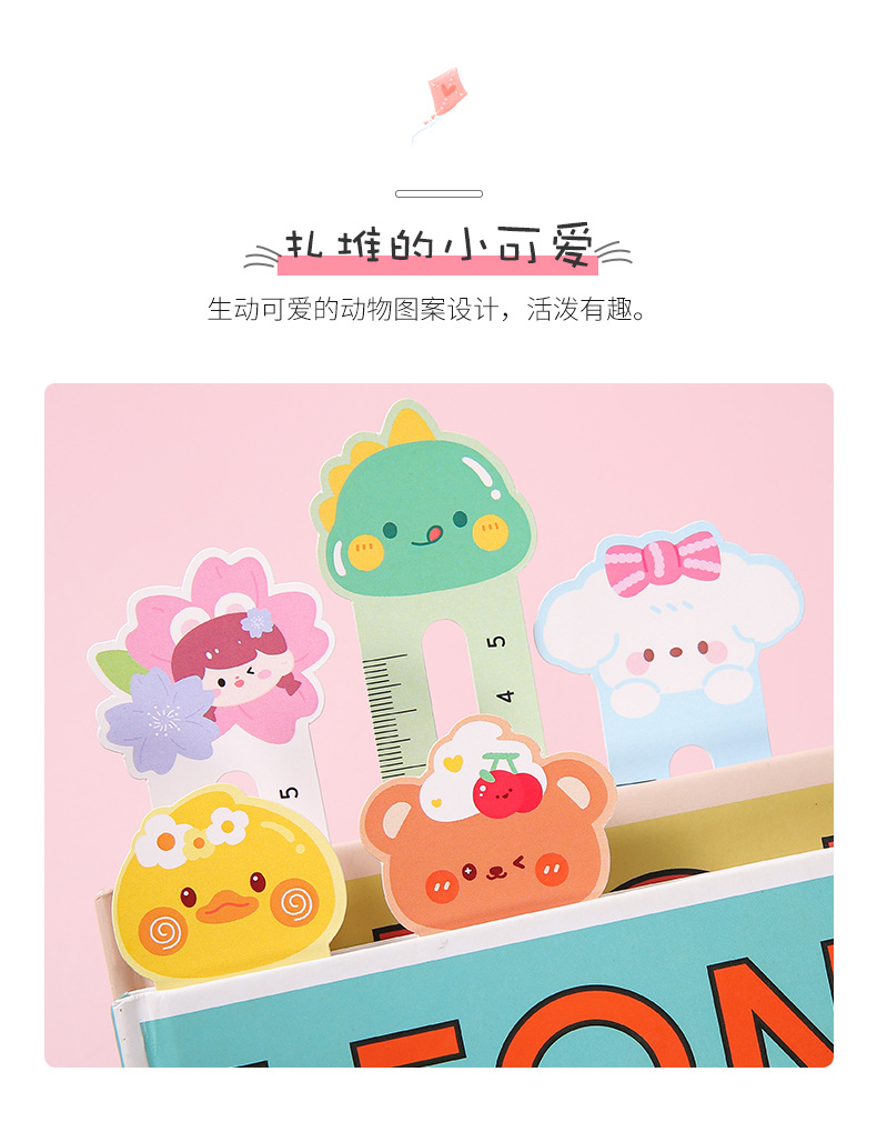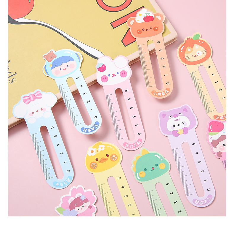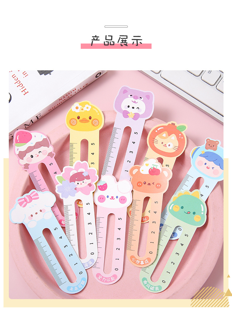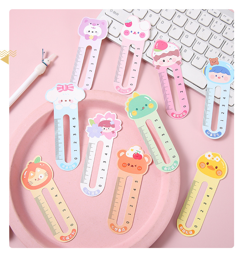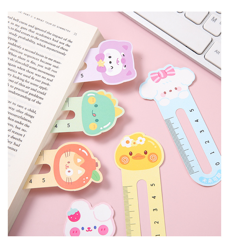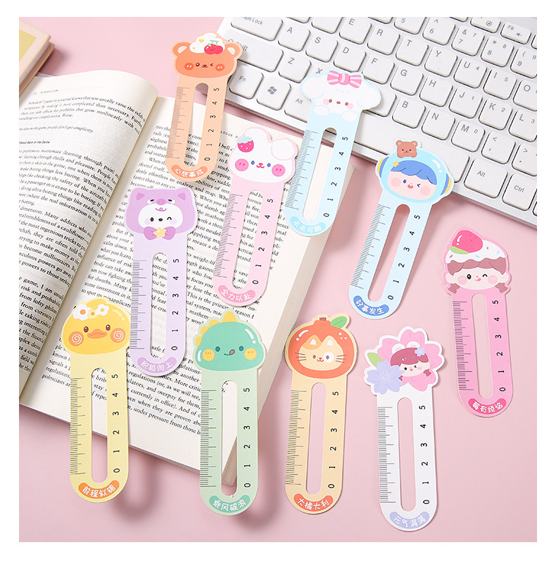かわいい萌えアニメのしおりのスケール小動物の人物の顔の値のしおりの小学生は小さい贈り物を励まします。