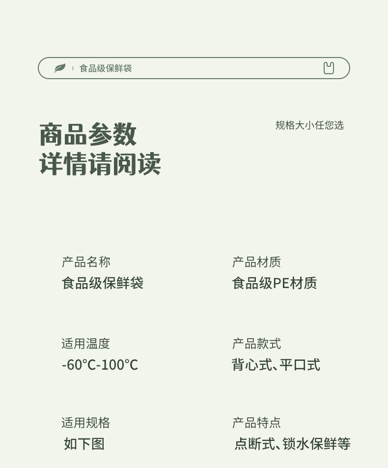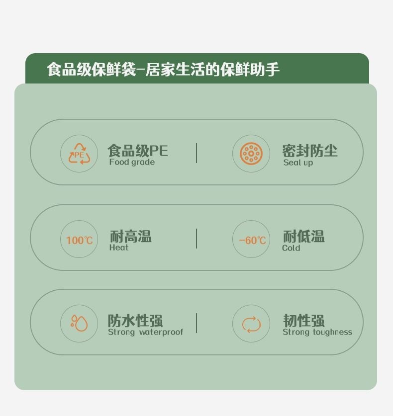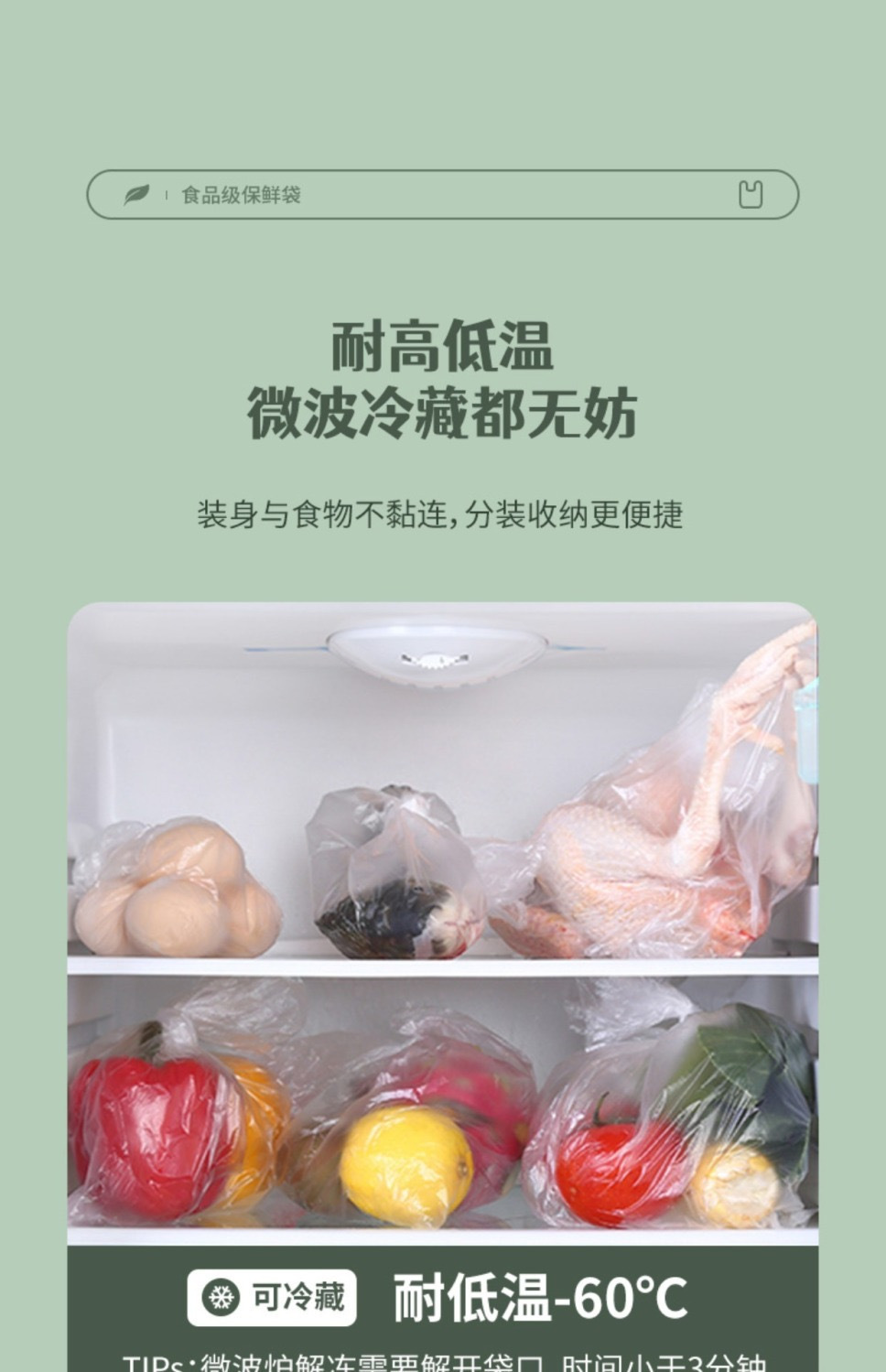 康為鮮度保持袋冷蔵庫キッチン包装袋家庭用食品級ベスト式使い捨て鮮度保持袋ビニール袋