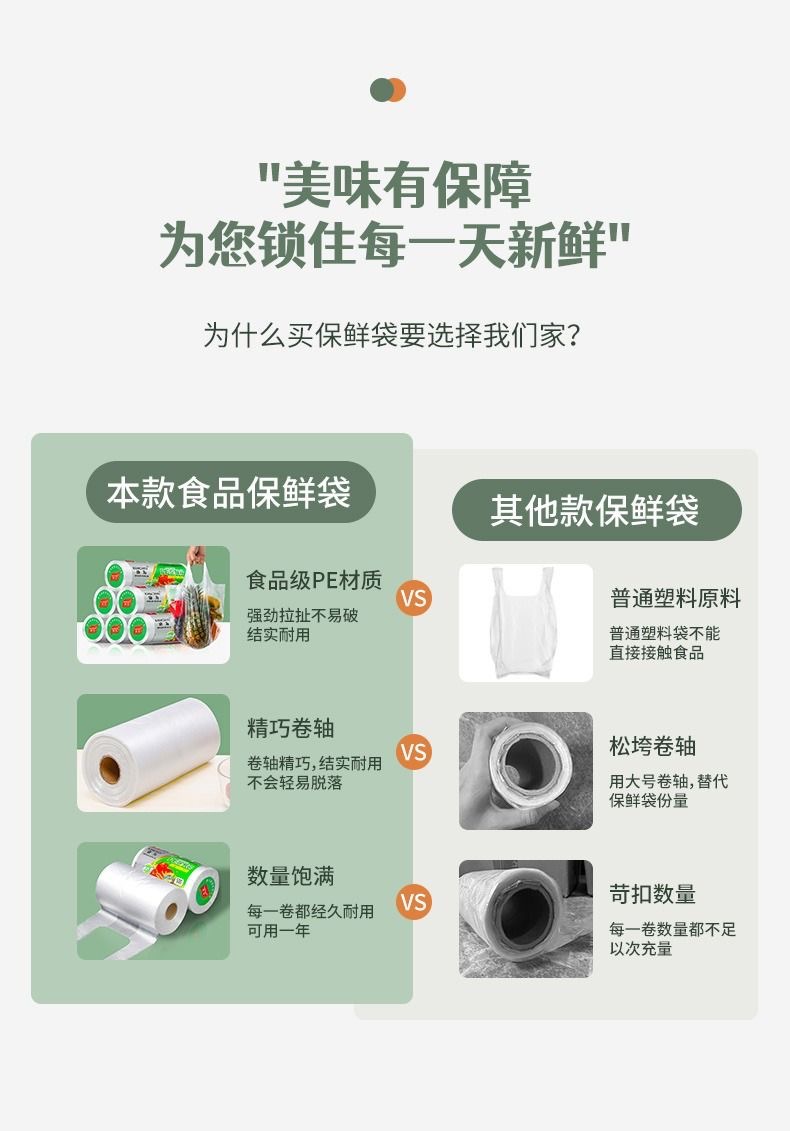 力峰ベスト食品鮮度保持袋厚手点断式手裂きスーパー連巻袋キッチン手提げビニール袋鮮度保持