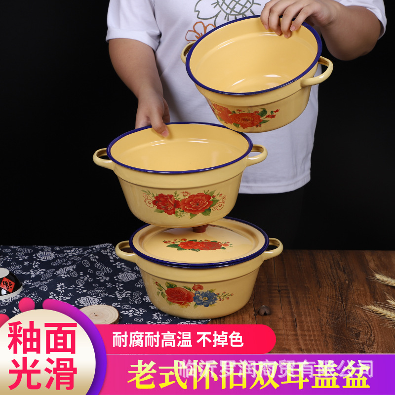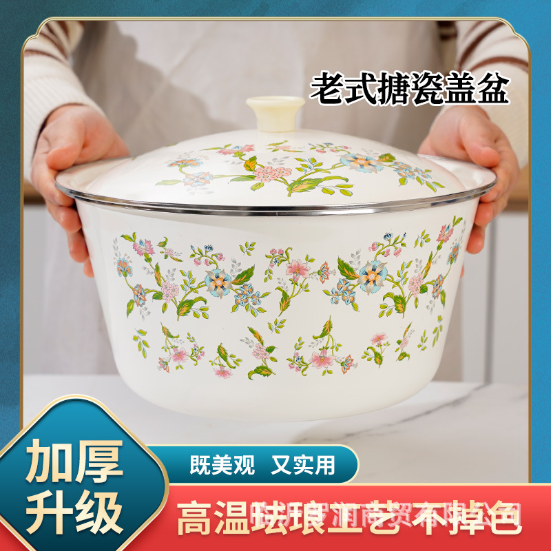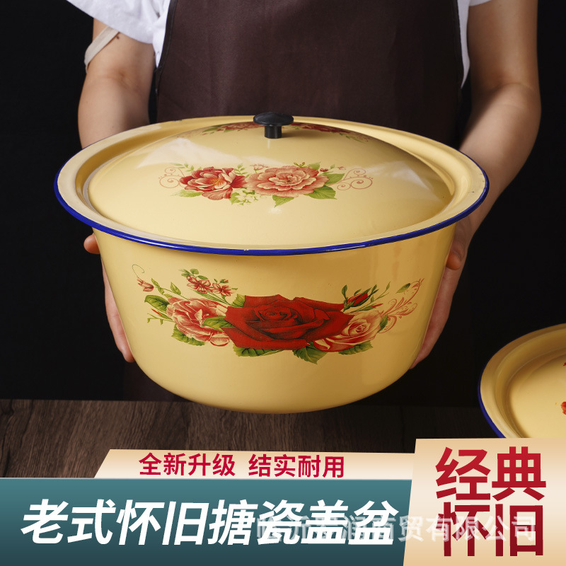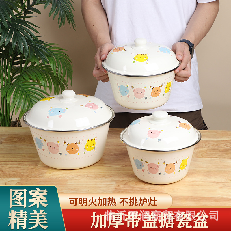 エナメル豚油缶家庭用エナメルボウルを厚くして、蓋付き食品級の古い生臭物油缶キッチンでフィリングボウルを混ぜる