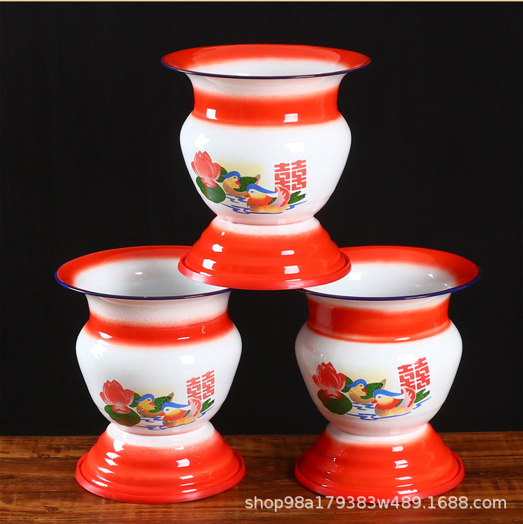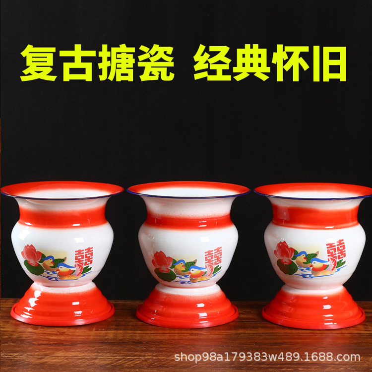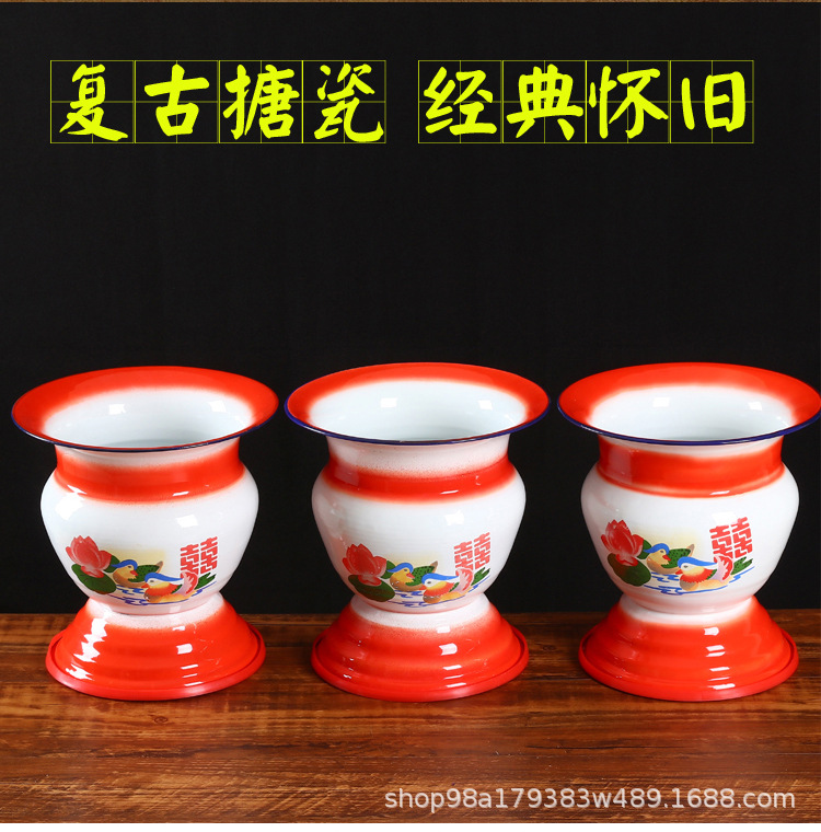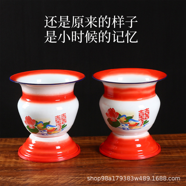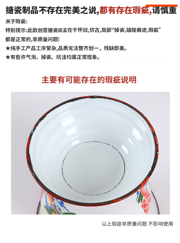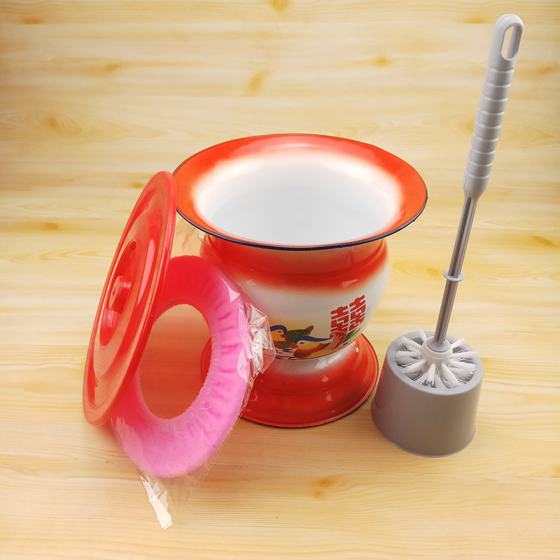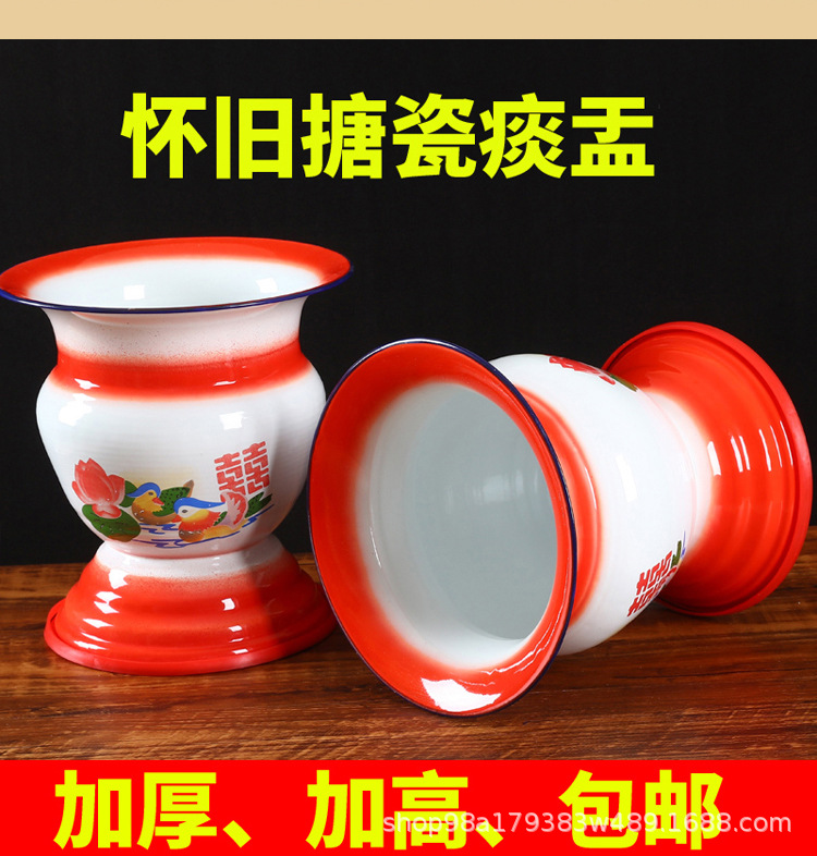 批发加厚搪瓷痰盂矮痰桶小孩搪瓷尿盆老人坐便器尿桶配盖垫刷泉富