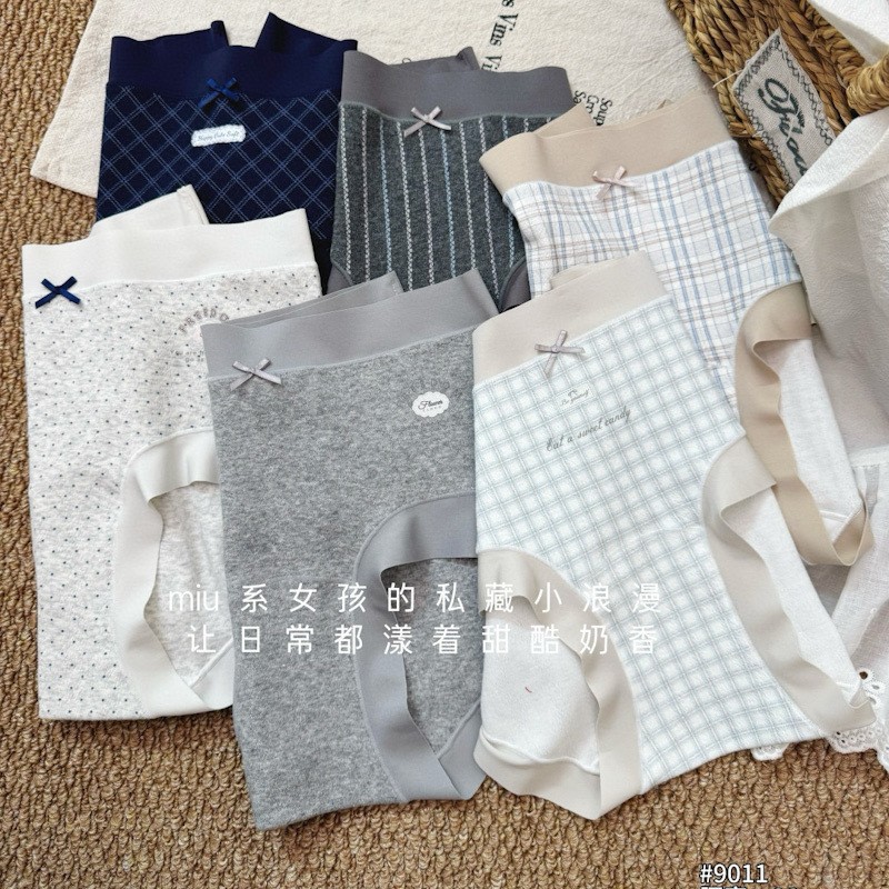 低饱和格纹透气棉女生内裤灰色系无痕包臀大弹力少女三角内裤批发