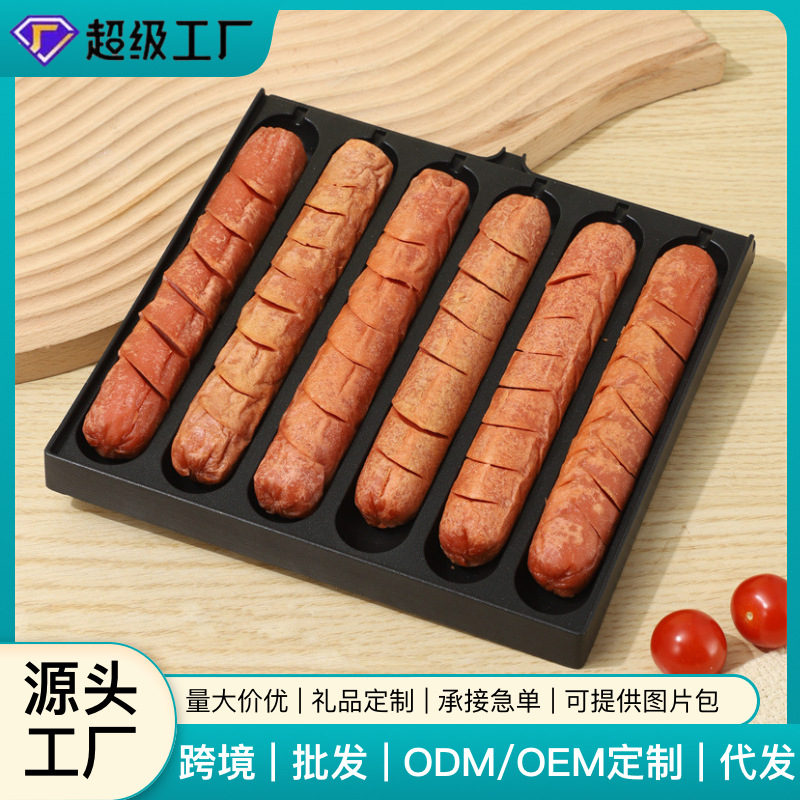 6管の焼き腸の皿の道端の露店の商用の脆い皮のデンプンの腸の焼き腸の皿の夜市は露店のカード式の炉の鋳型のアルミニウム合金を並べます。