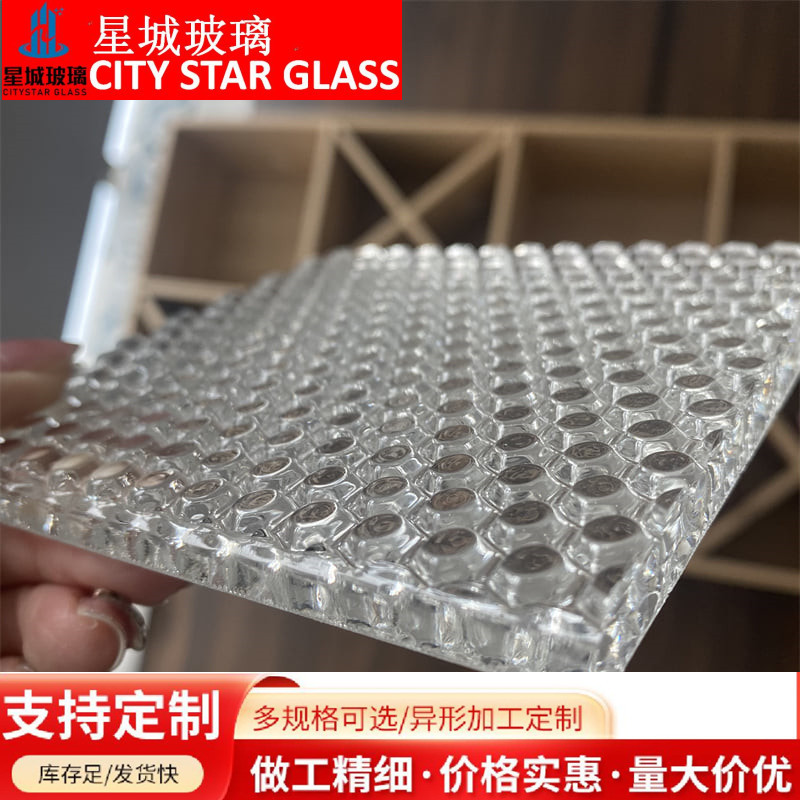 安装时可将其花纹面朝向室内,以增强装饰感;作为浴室,浴厕门窗、门窗、屋内间隔玻璃时,