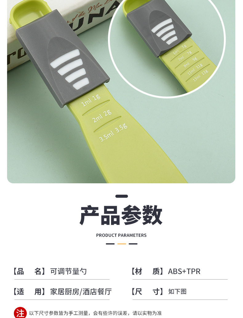 厨房家用可调节量勺带刻度克数控盐奶粉勺子计量刻度勺烘焙工具