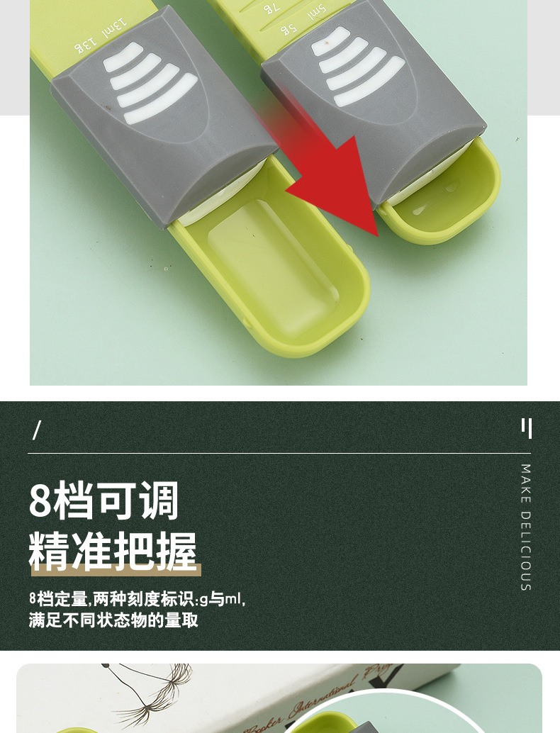 クロスボーダー8段ベーカリースケール計量スプーン調節可能なグラムスプーン粉ミルク定量スプーンキッチンツール計量スプーン