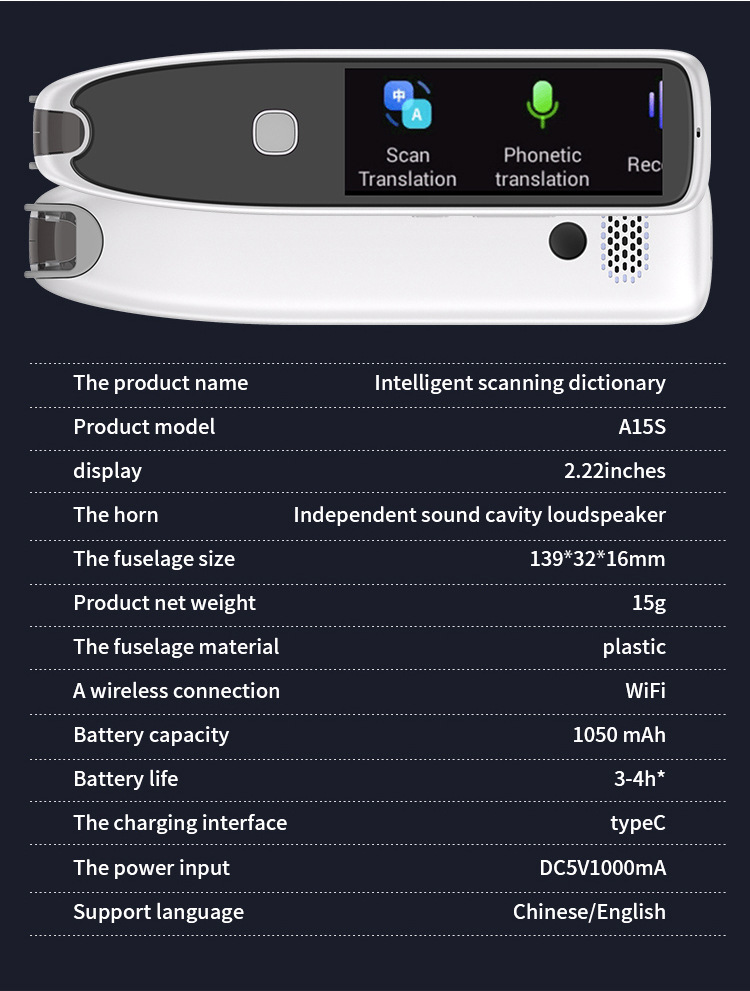 2.22インチクロスボーダー多言語翻訳ペンwifi辞書スキャンペンスマート英語スキャンペン