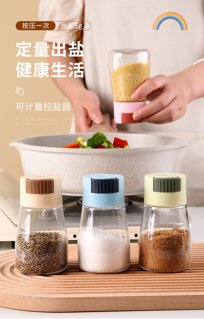 厨房定量调料罐按压式控盐瓶家用调料盒密封防潮盐罐味精盐调味瓶