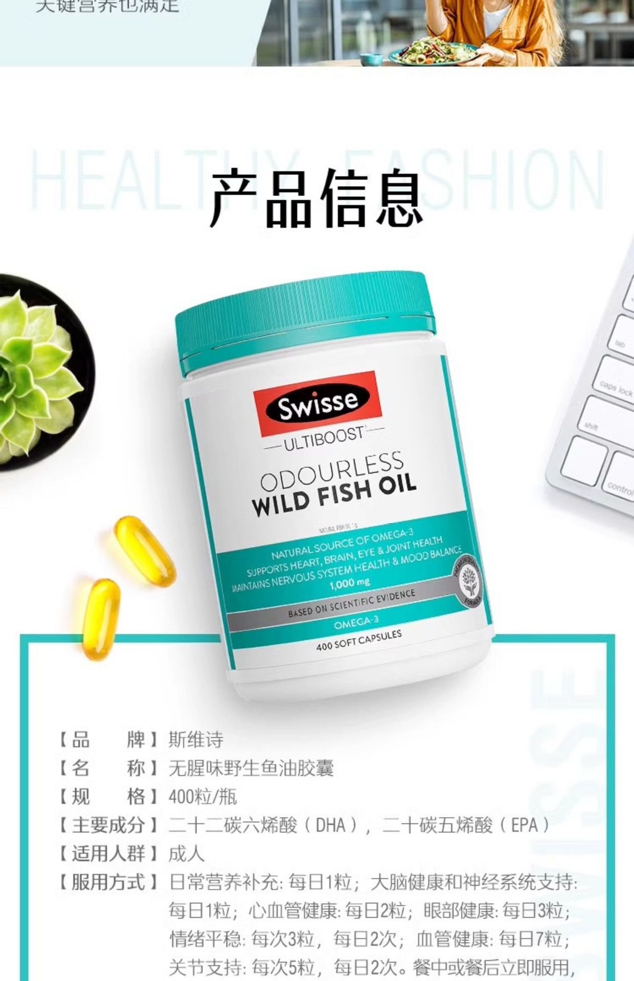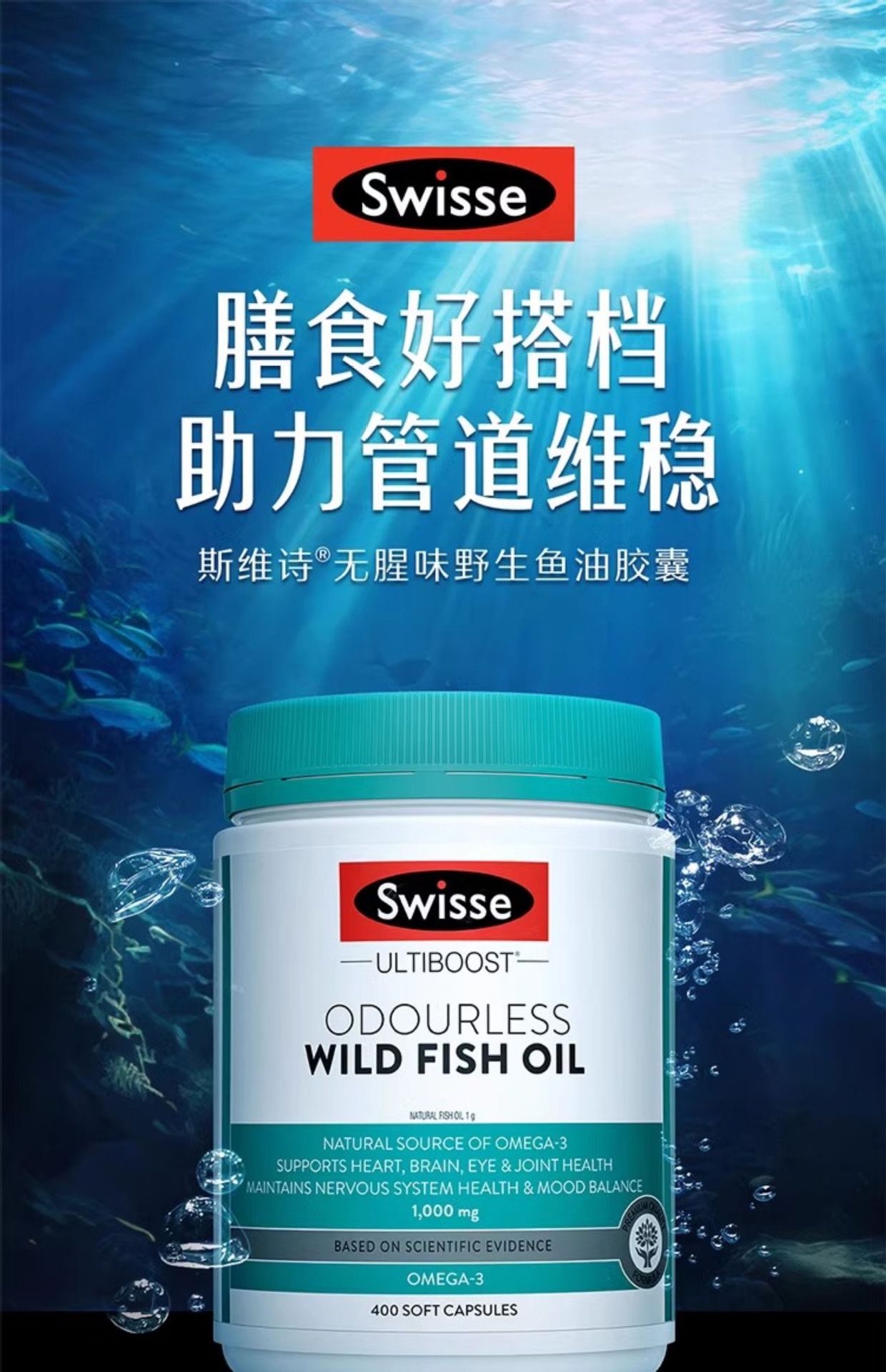斯维诗高浓度深海鱼油软胶囊澳洲1000mg400粒一件代发无腥味鱼油