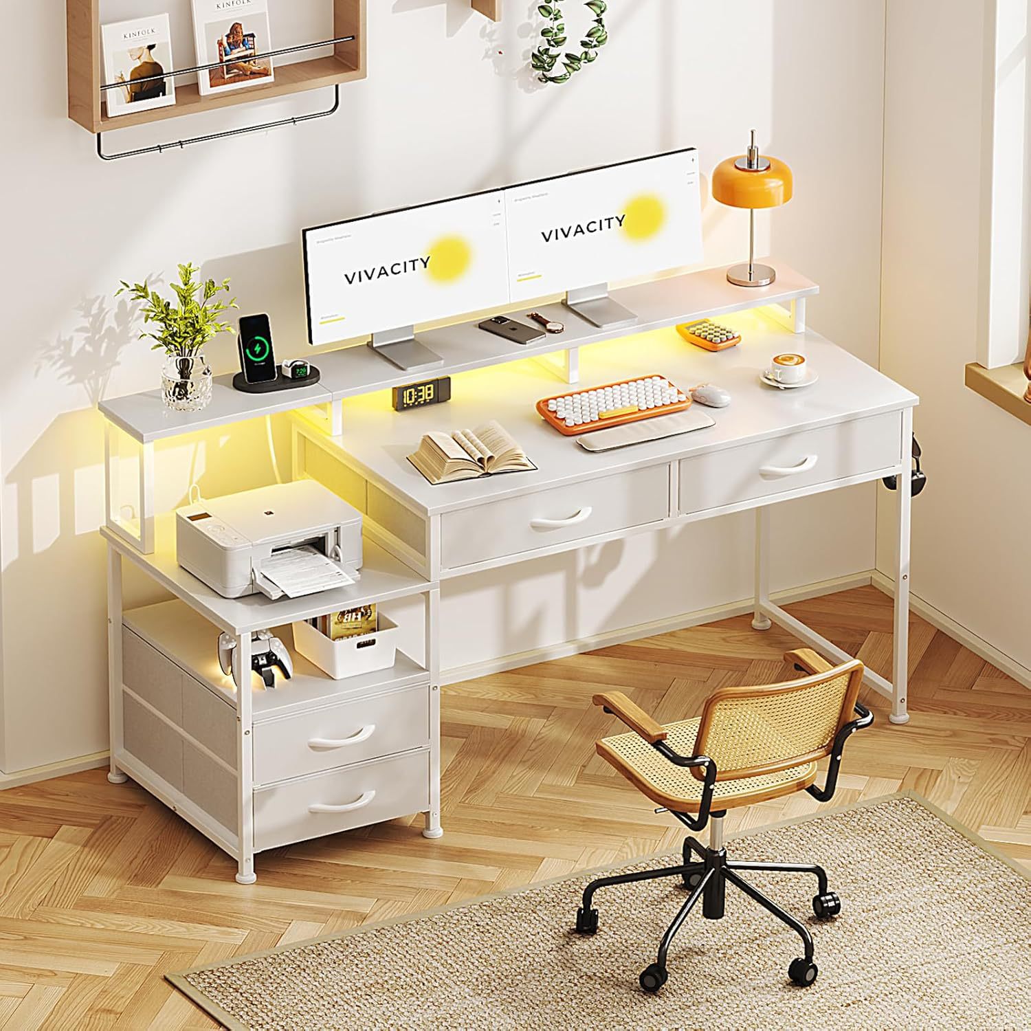 4タップテーブルリバーシブル家庭用デスクディスプレイスタンド付きプリンタラック電源コンセント付きLEDストリップ