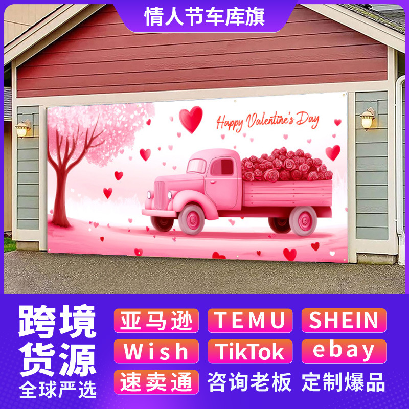 国境を越えた新しいバレンタインデー車庫旗アマゾン庭園ピンク装飾写真横断幕車庫門旗カスタマイズ