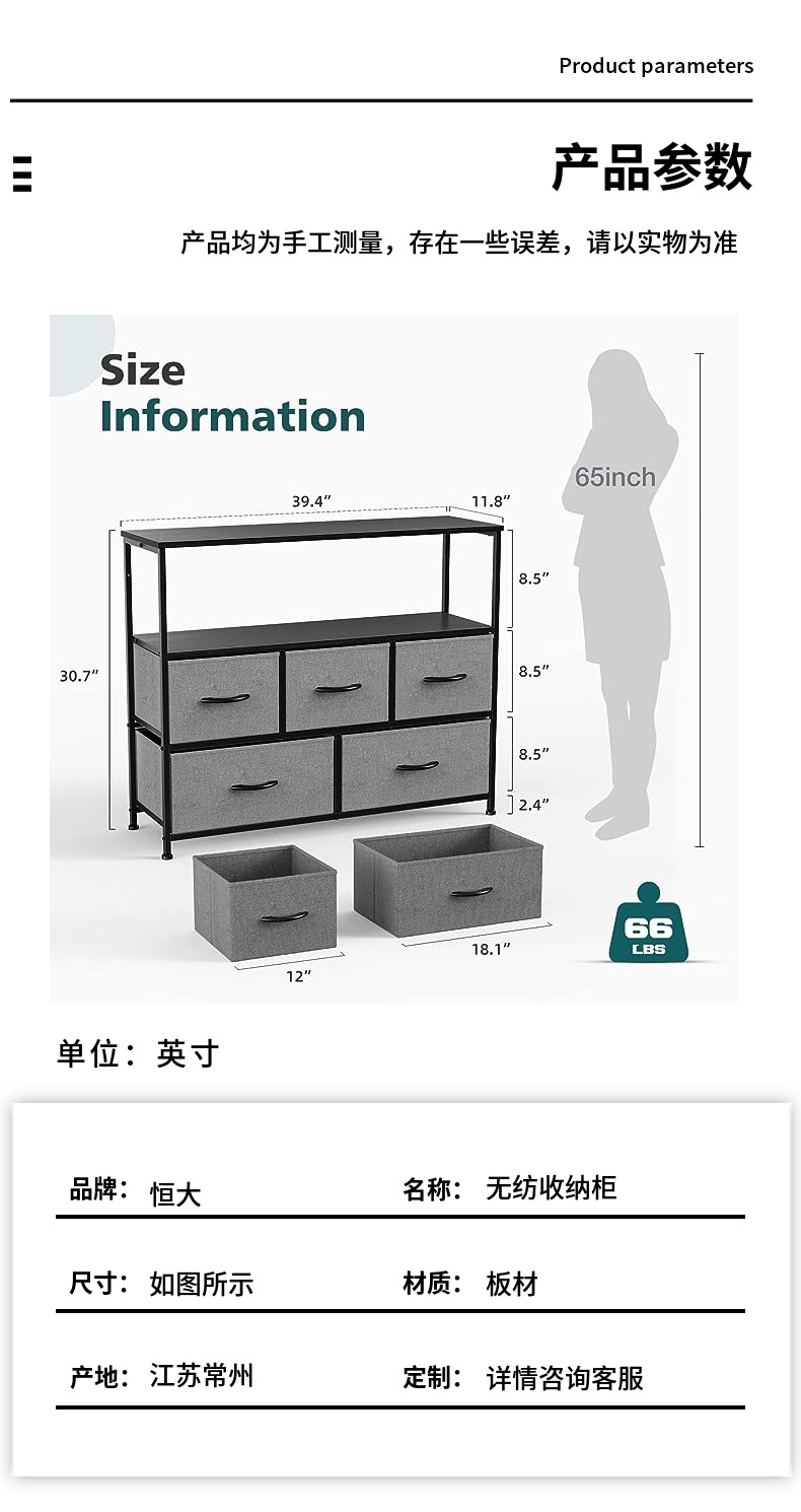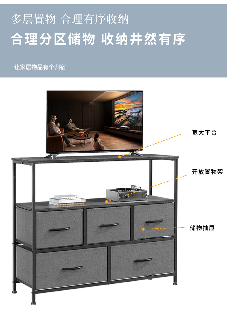 多機能チェスト、寝室、リビングルーム、テレビキャビネット、壁掛け、複数の不織布引き出し収納スペース、工場から直接供給