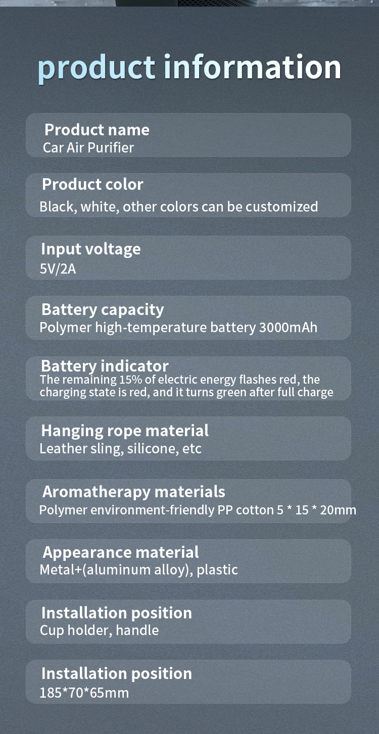 車用空気清浄機は臭いを除去し、ホルムアルデヒドを除去します 車用アロマテラピー 車用小型浄化装置