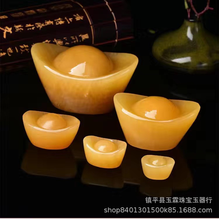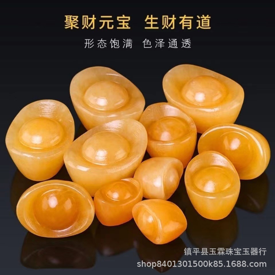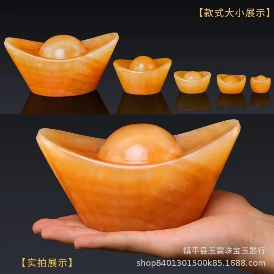 米黄玉元宝置物黄玉金元宝聚宝盆アフガニスタン白玉元宝家庭置物卸売り