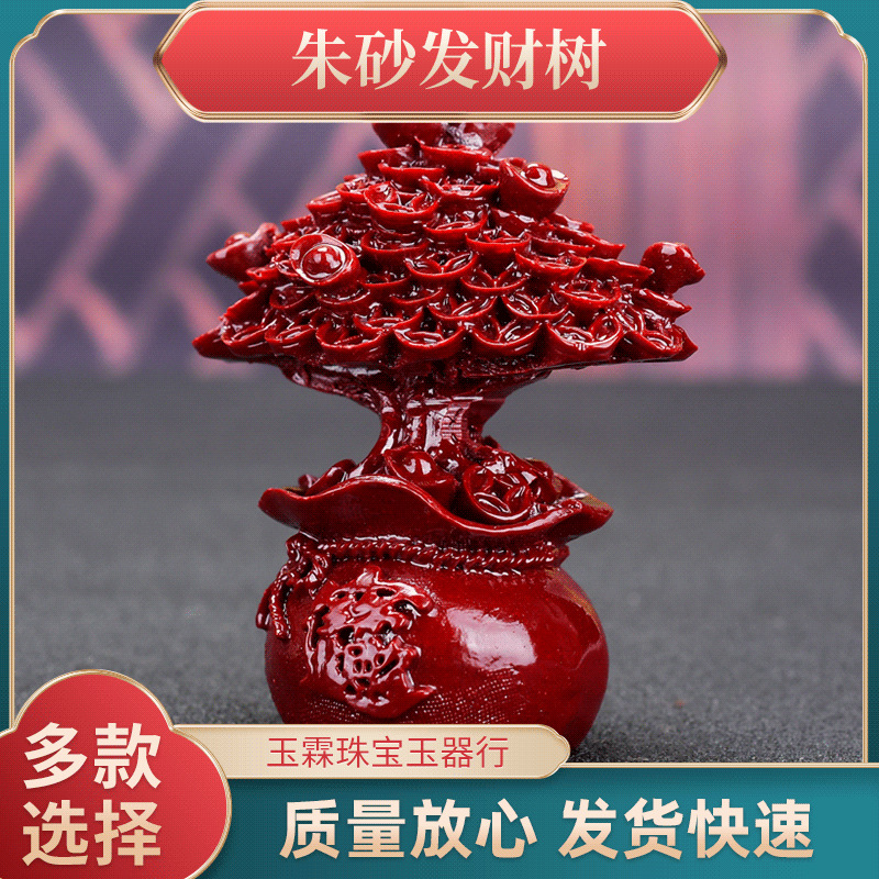 朱砂置物、招財樹、玉器、紫金砂車、オフィスデスク用金運アップツリー、家庭用装飾品、金運アップツリー、文玩