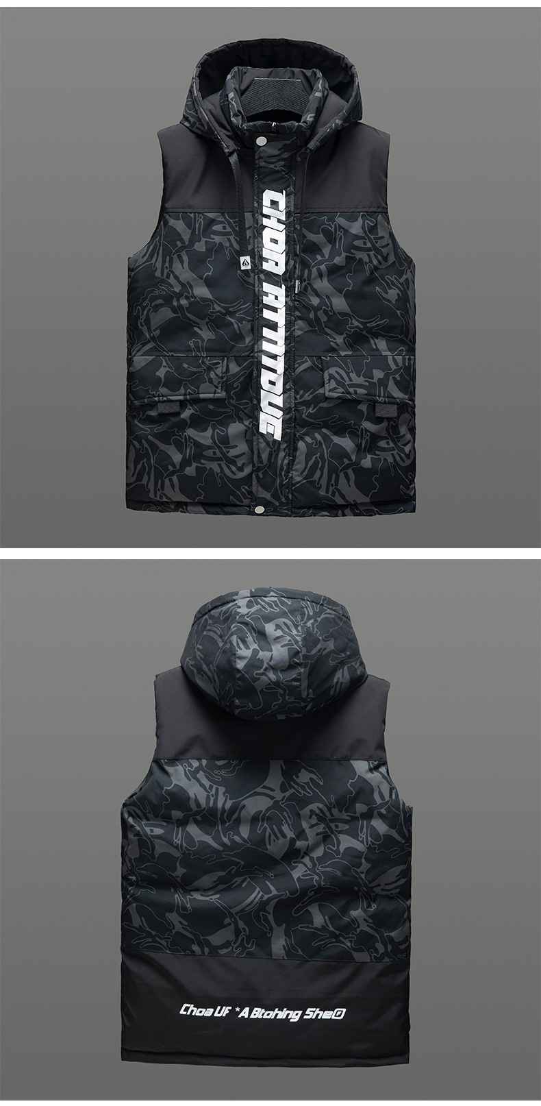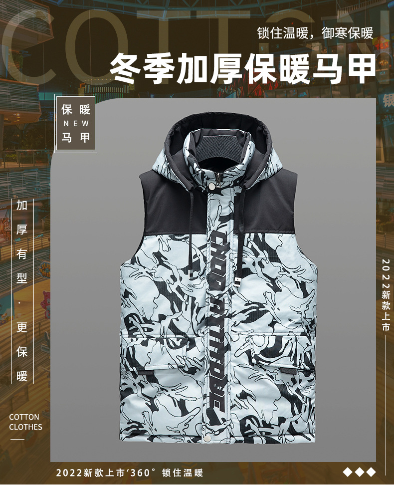 越境秋冬の新型男性綿馬甲は帽子を脱ぐことができます。