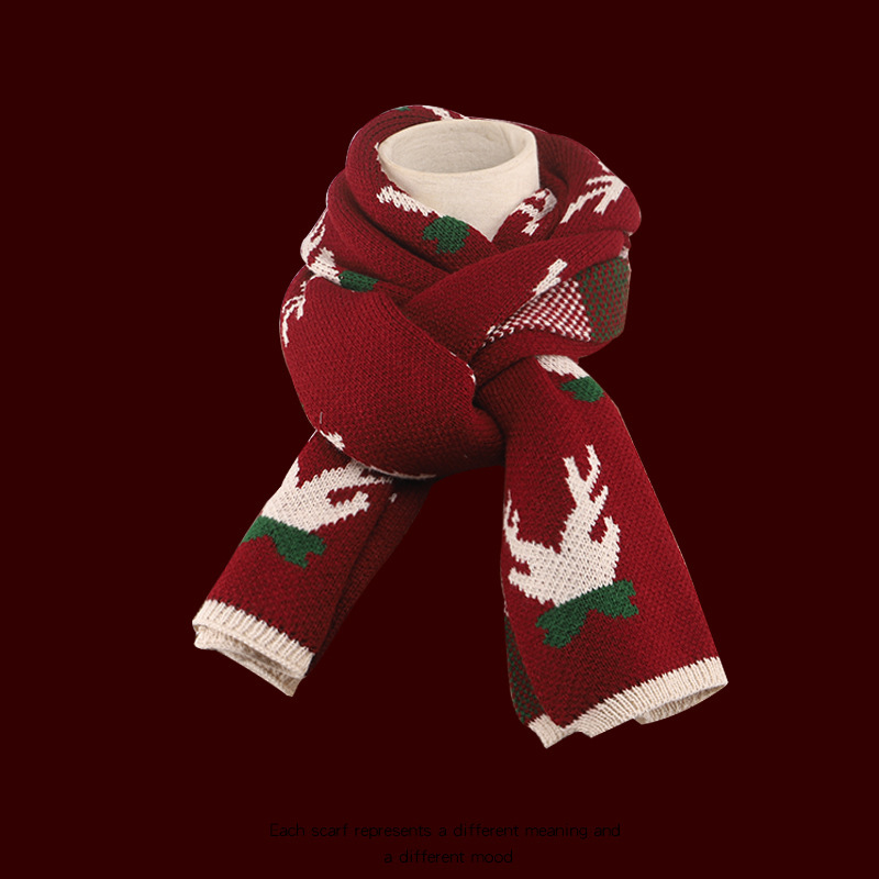 クリスマスプレゼント赤い鹿マフラー女性百合秋冬保温延長ins学生かわいいカップルマフラー