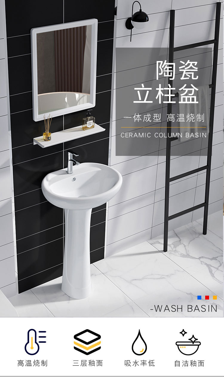 立柱盆家用陶瓷洗手盆免打孔小户型落地式洗手台盆一体卫生间洗手