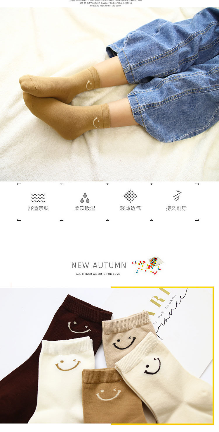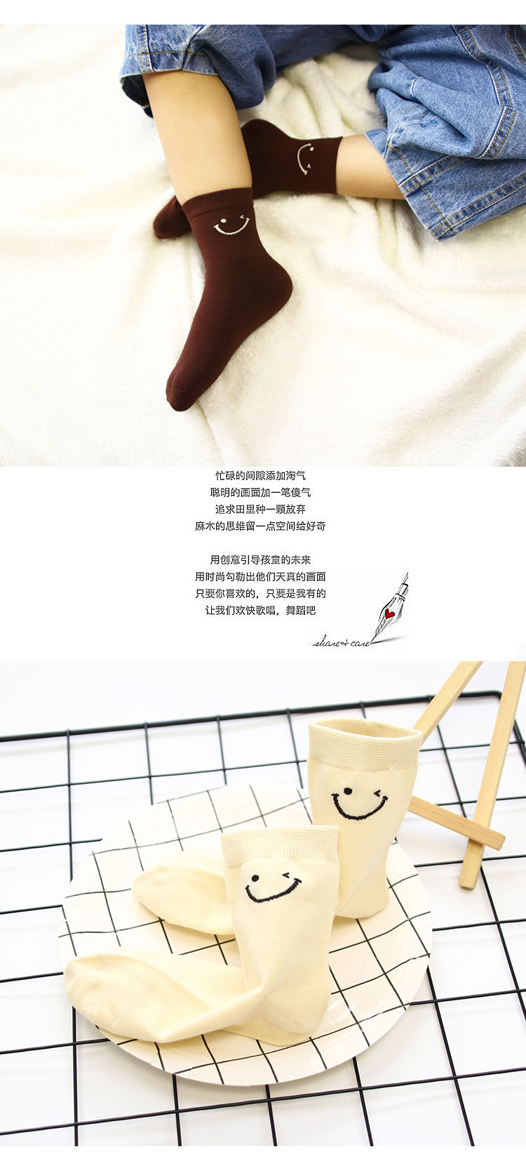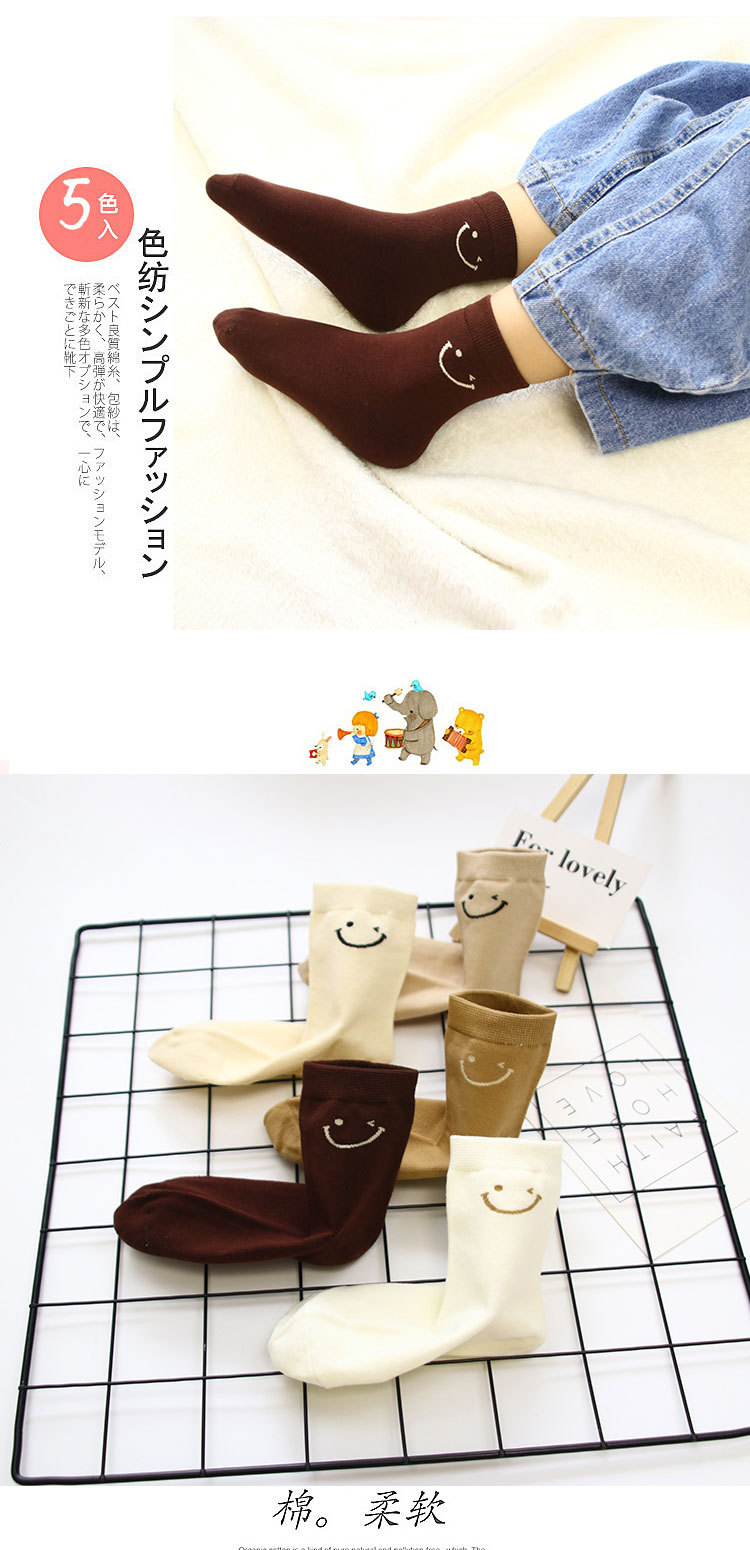 卸売りの新型の子供の靴下の男の子の女の子の漫画のかわいい笑顔のカレー色の秋の学生の運動の靴下