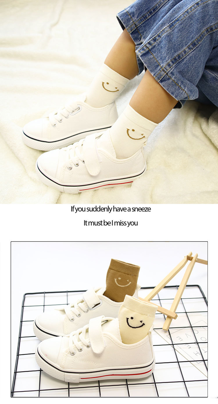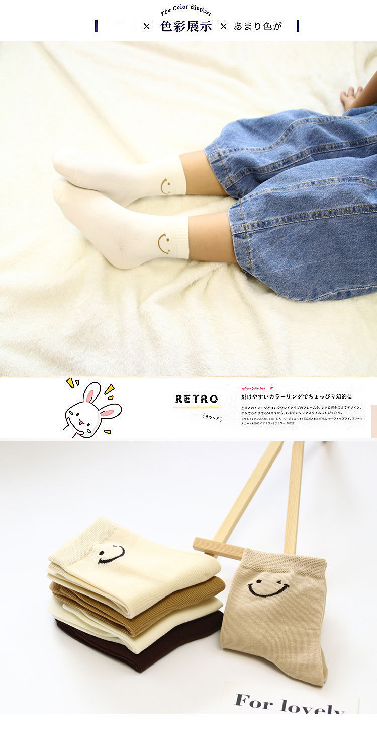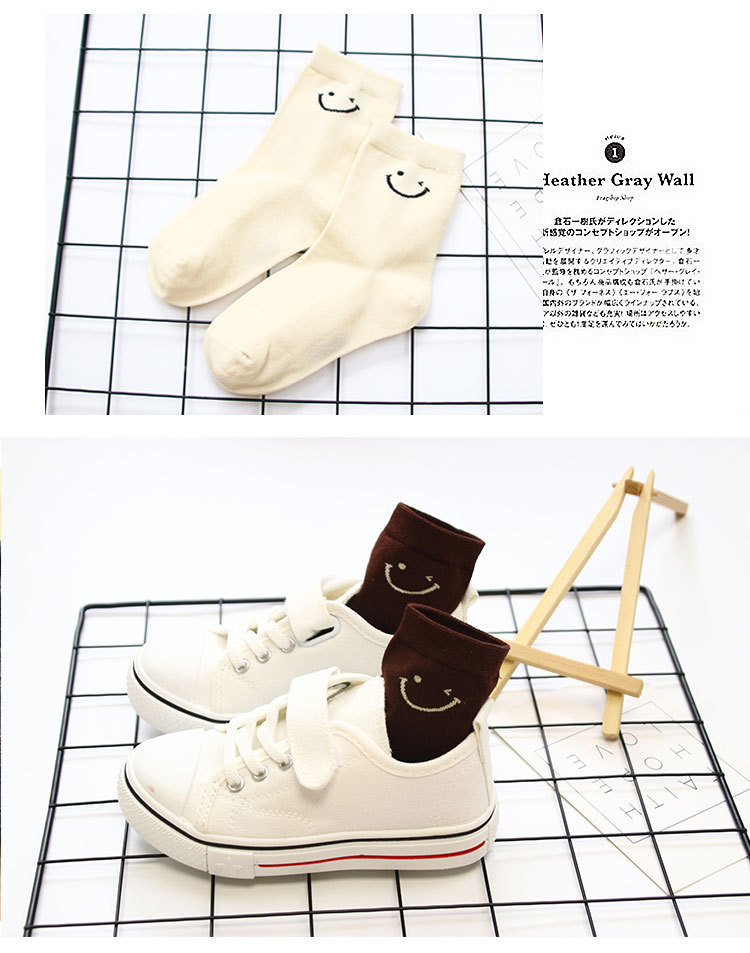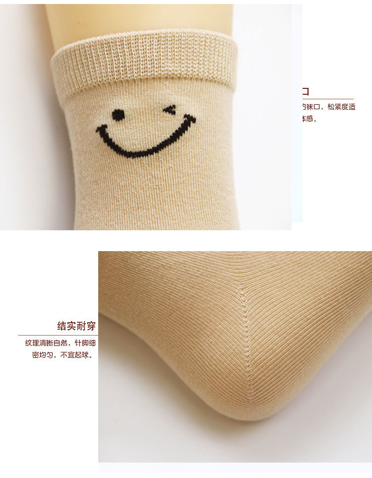 卸売りの新型の子供の靴下の男の子の女の子の漫画のかわいい笑顔のカレー色の秋の学生の運動の靴下