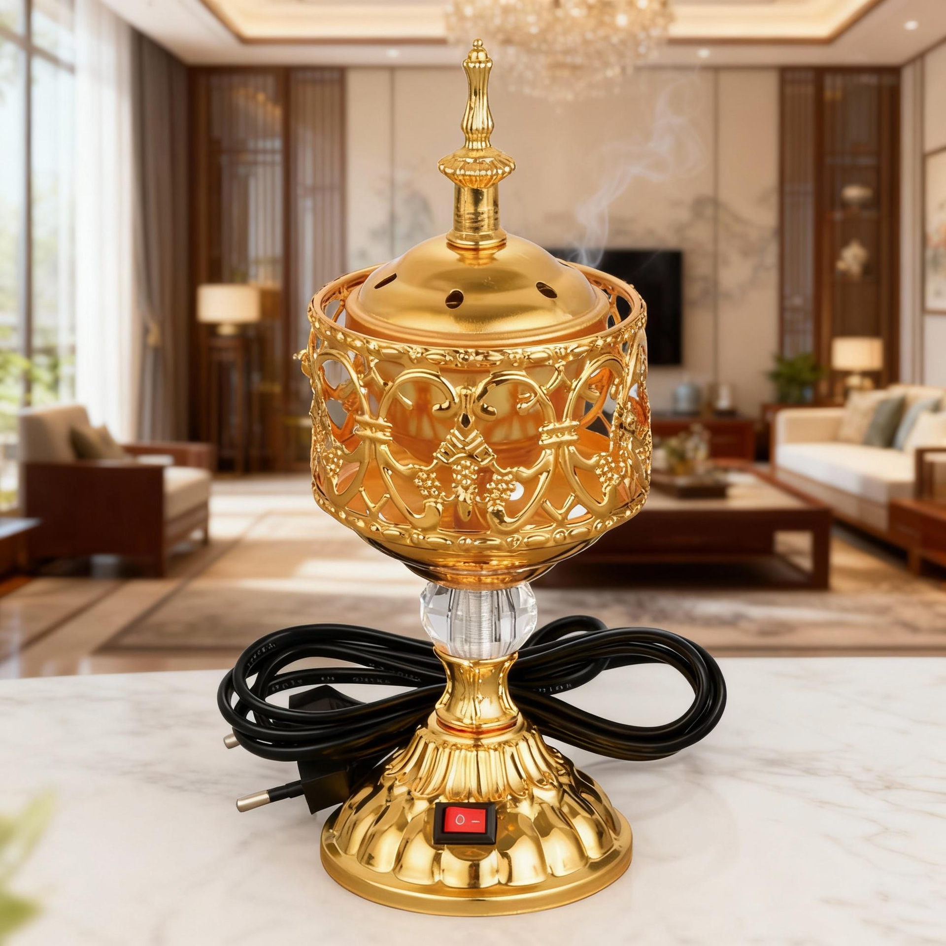 厂家新款批发金属阿拉伯风格桌面插电香薰炉Metal incense burner