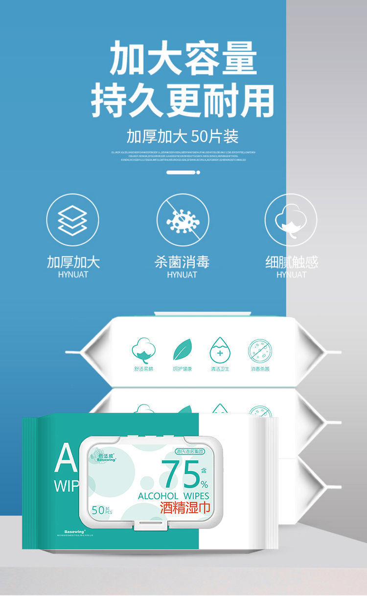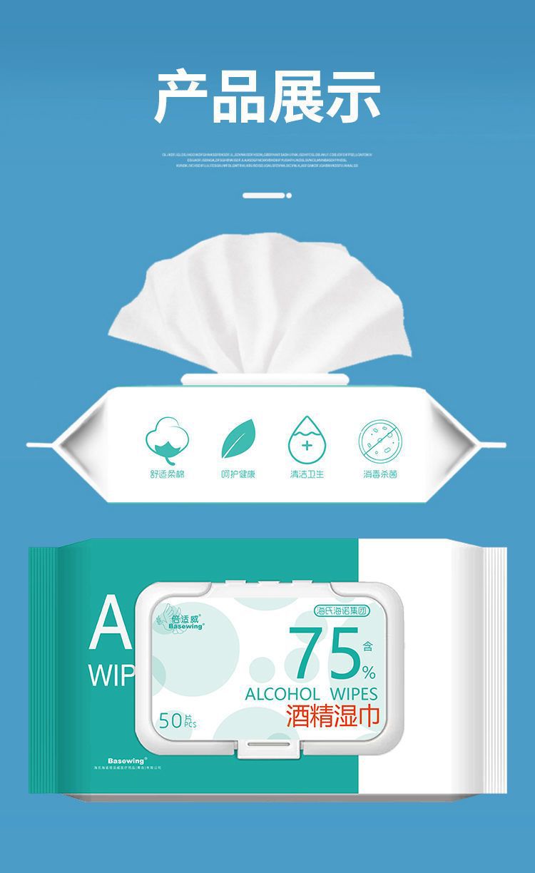 海氏海諾倍適威75% アルコールウェットティッシュ衛生ウェットティッシュ大バッグ綿片衛生ウェットティッシュ50枚