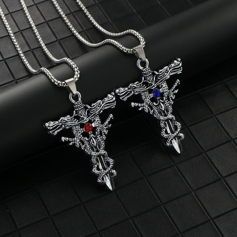 2024年ヒップホップクロスネックレス男性双龍盤剣ペンダント男性個性アクセサリーレトロファッションアクセサリー