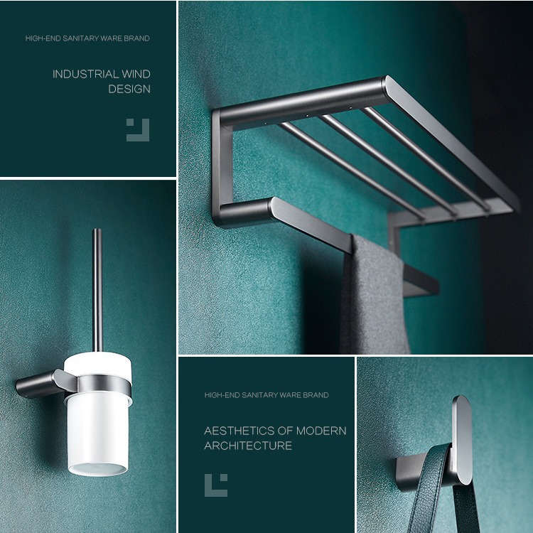 ガンメタルグレーの全銅製タオル掛け、バスルームタオルラックセット、トイレ壁掛け収納ラック、シングルロッドハンガー