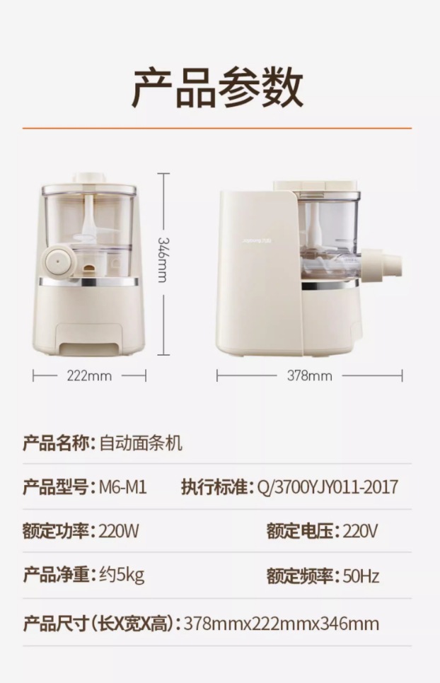 九陽製麺機 全自動麺製造機 家庭用電動スマート縦型麺製造機 600g容量 M6-M1