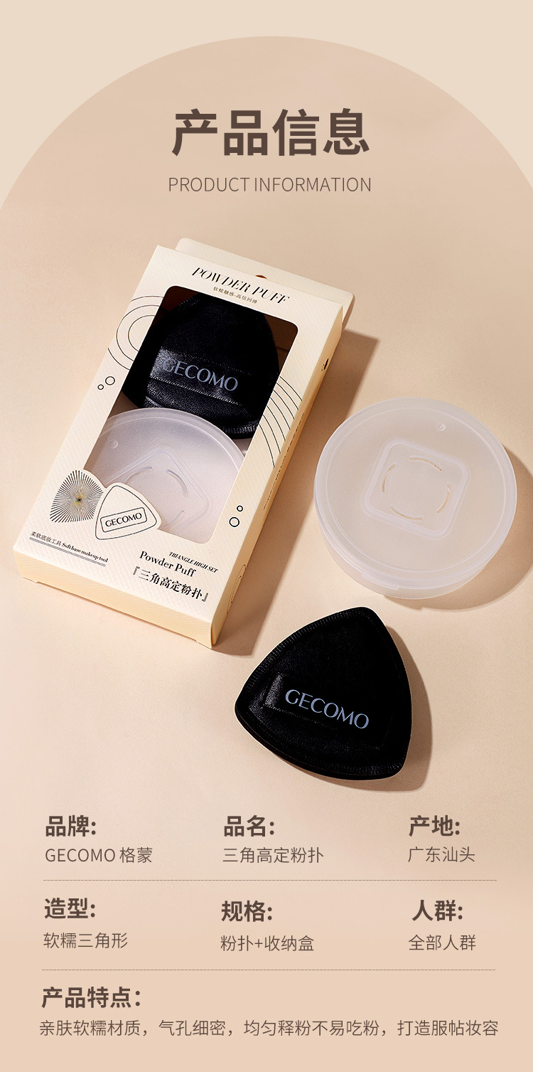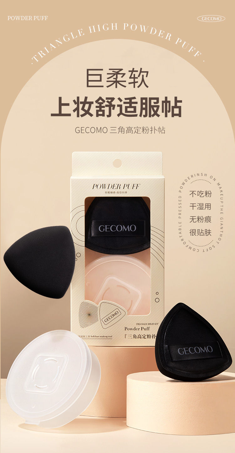 Gecome三角形黒パフはとても柔らかくて、ファンデーションのカバーを食べません。専用の乾湿両用スポンジクッションです。