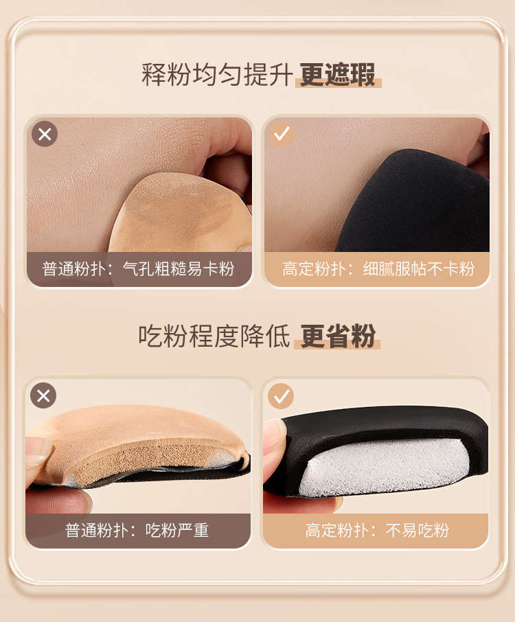化粧専用パフクッションシリーズは粉を食べないで化粧します。