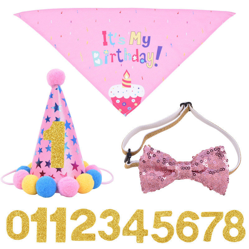 跨境宠物猫咪小狗周岁生日帽三角巾围巾领结狗狗派对装饰品套装