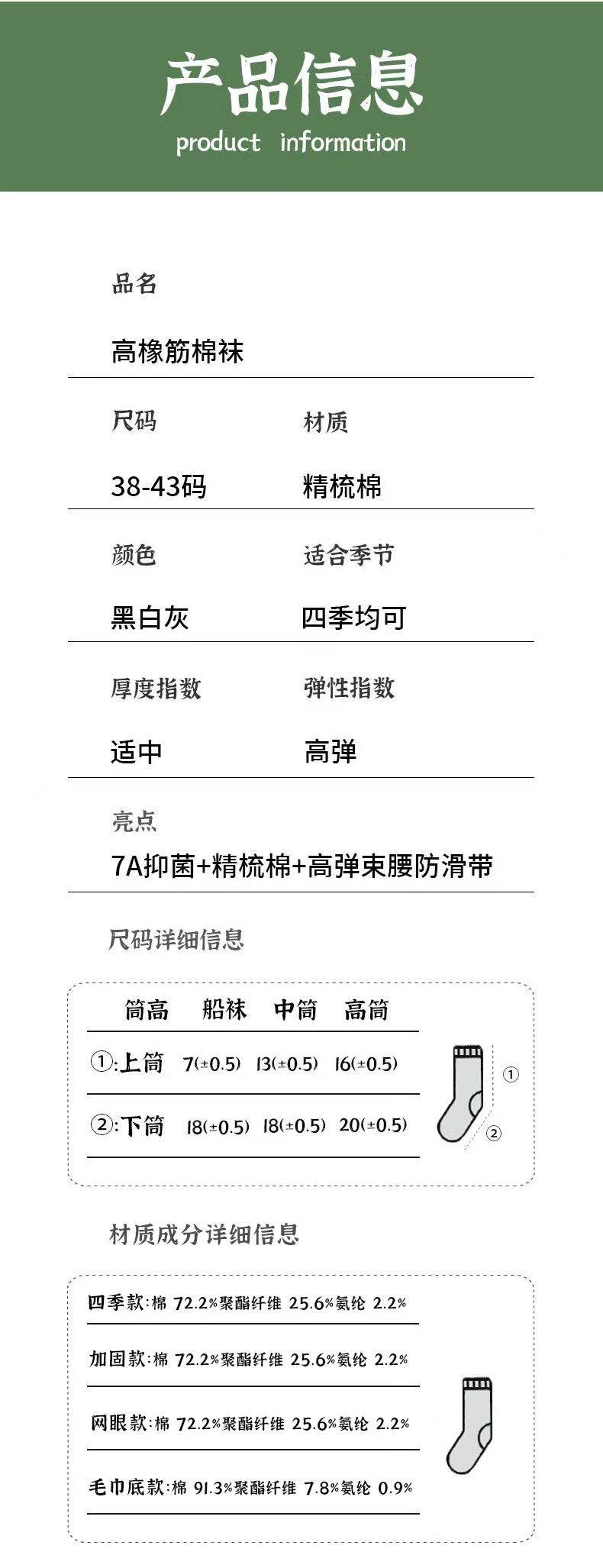 黒のクルーソックス,白いクルーソックス,黒のミッドカーフソックス,白いふくらはぎ半ばの靴下,黒のハイソックス,白いハイソックス,グレーのクルーソックス,グレーのミッドカーフソックス,グレーのハイソックス