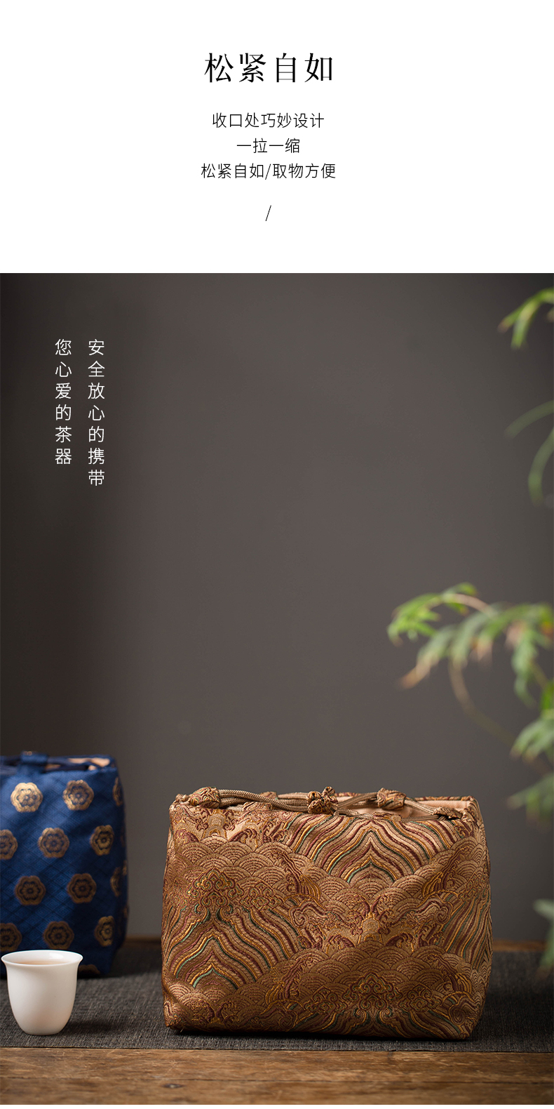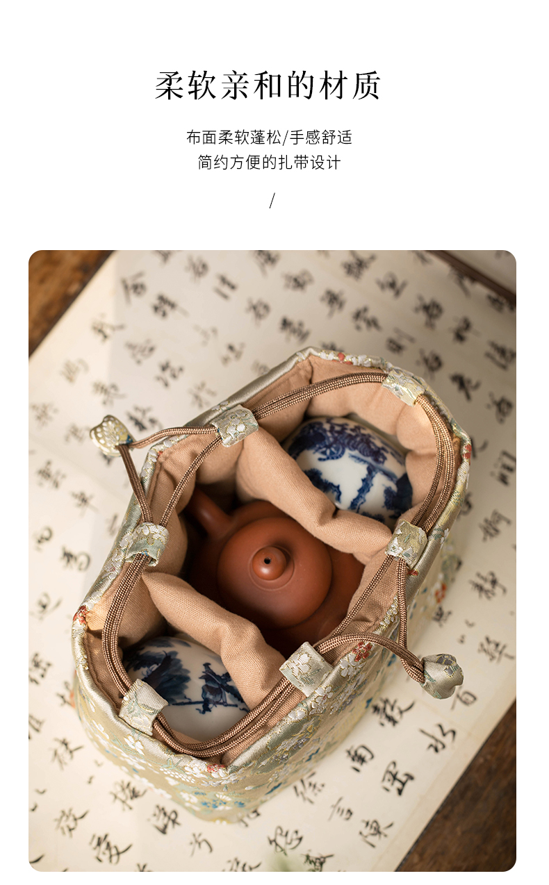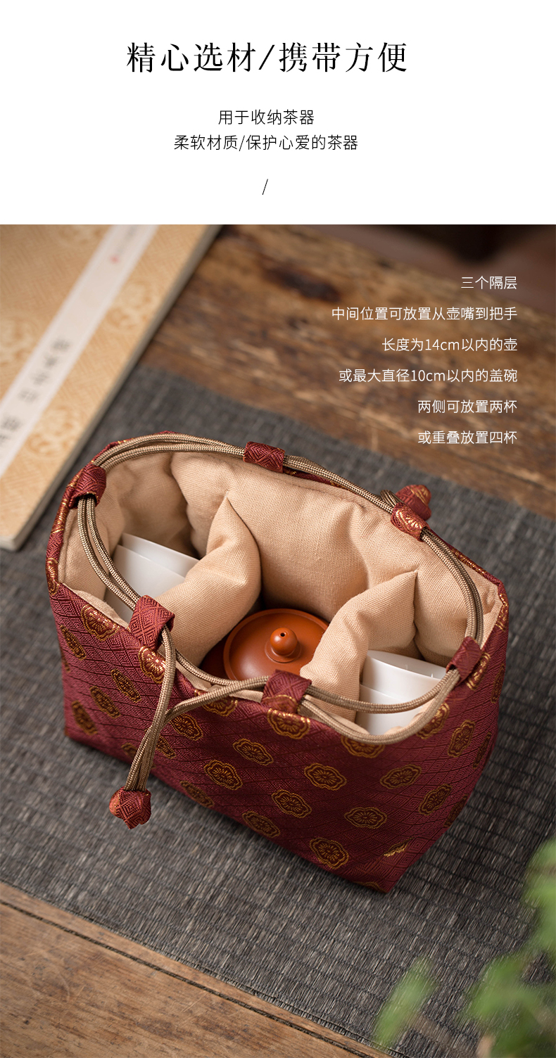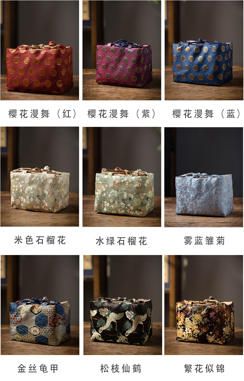 中国風レトロ雲錦一壺二杯携帯収納袋茶器茶葉缶ティーカップ旅行キャンプ収納バッグ