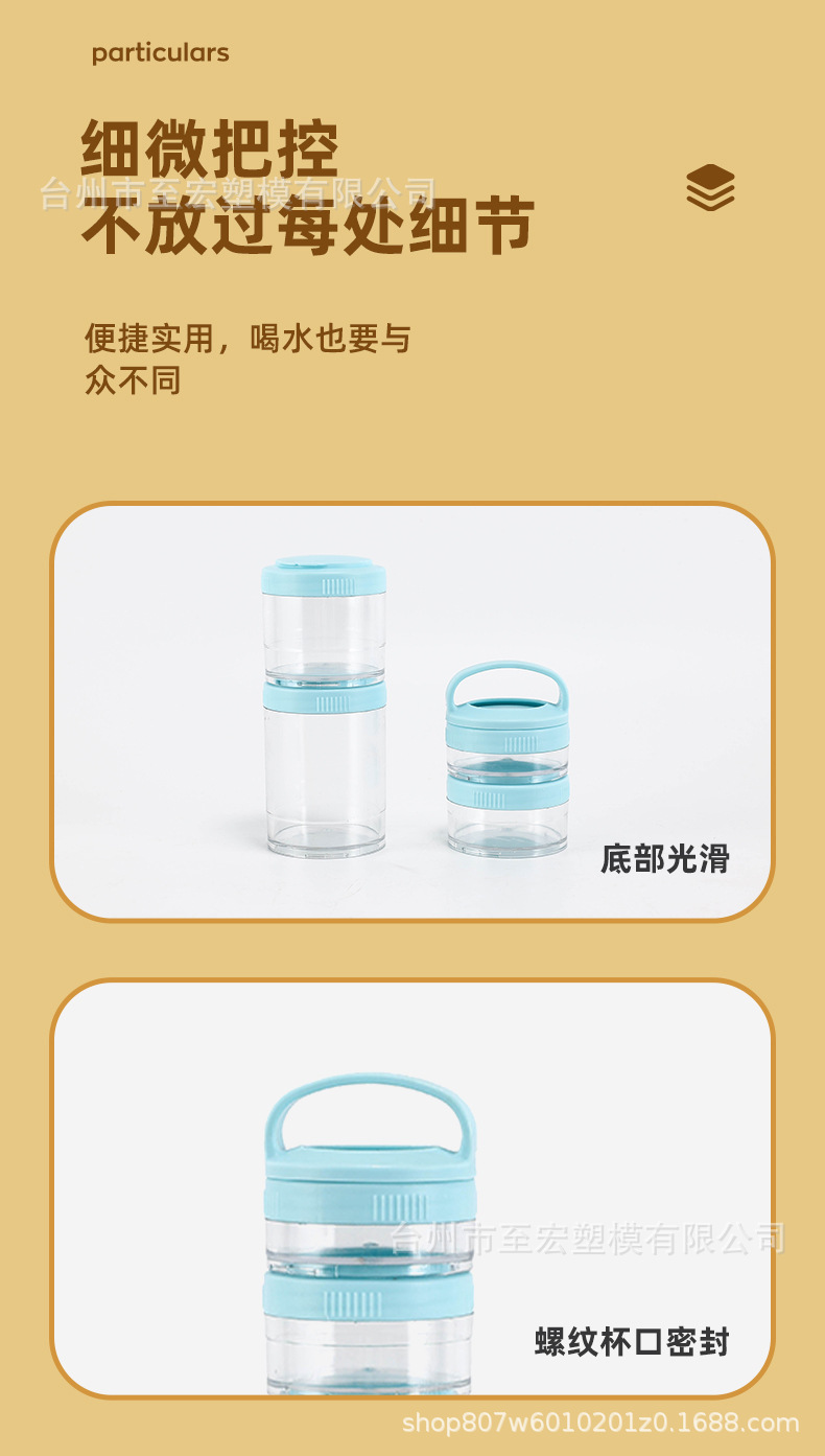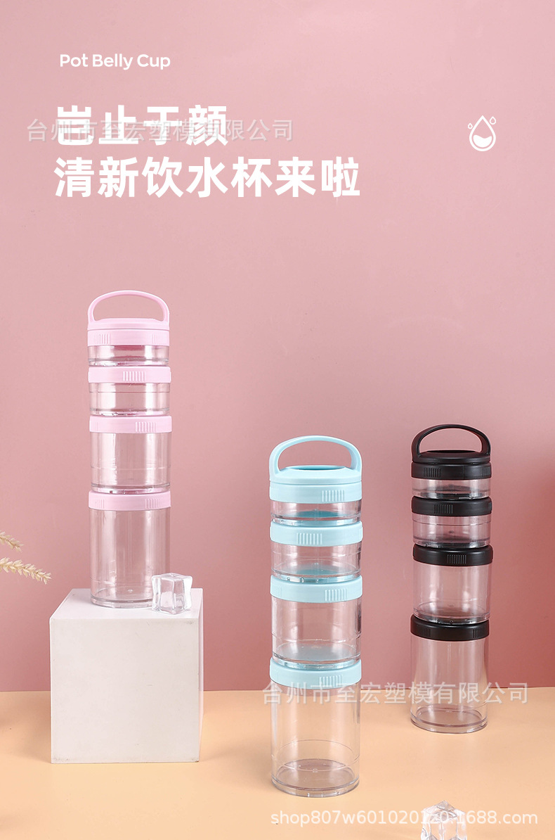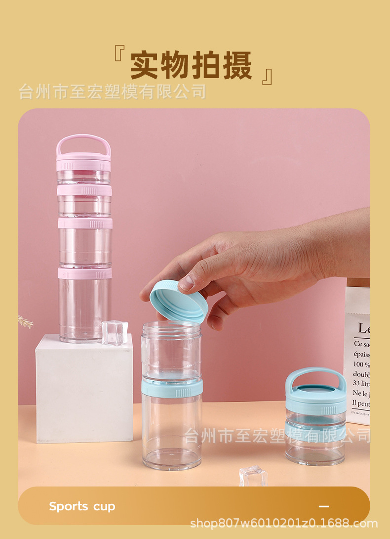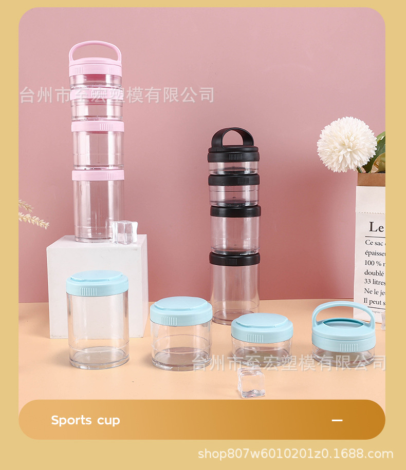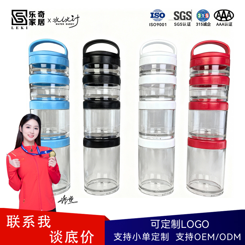 メーカー卸売り4層プラスチック蛋白粉ケース屋外携帯多層間食セットカップ層ハンドルカップ