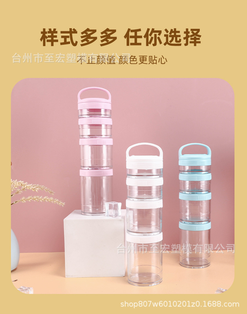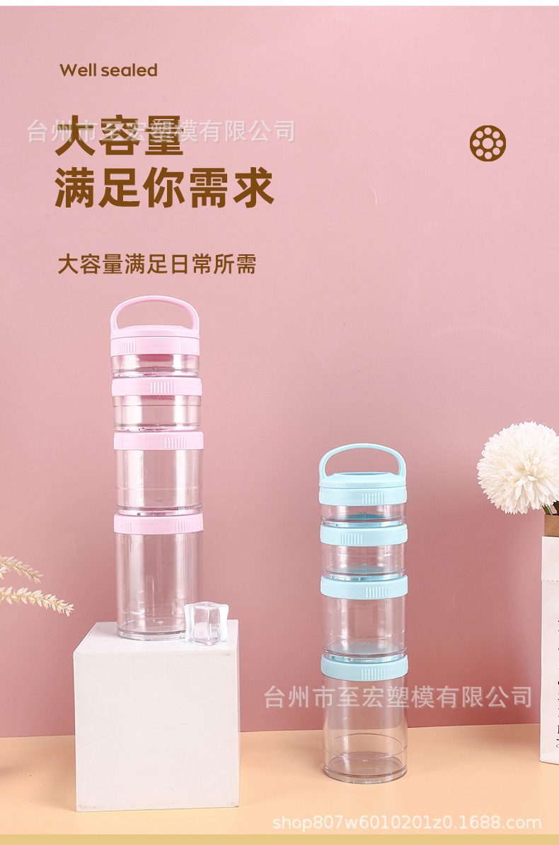 跨境350ML手提四层零食粉盒 户外便携多层粉盒可组装