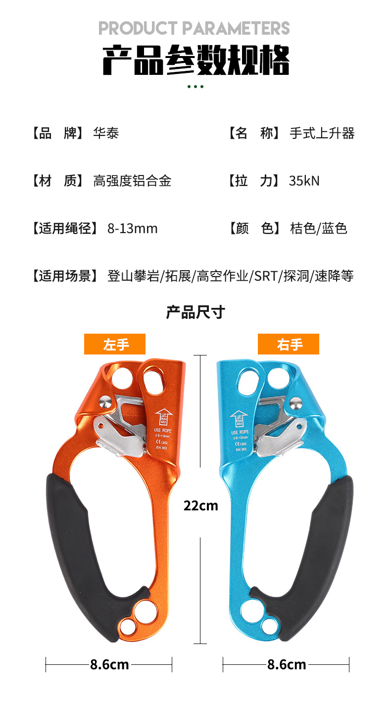 右手アッセンダーハンドロープクライマークライミングクライマー洞窟探検屋外 SRT ロッククライミング用品クライミング用品