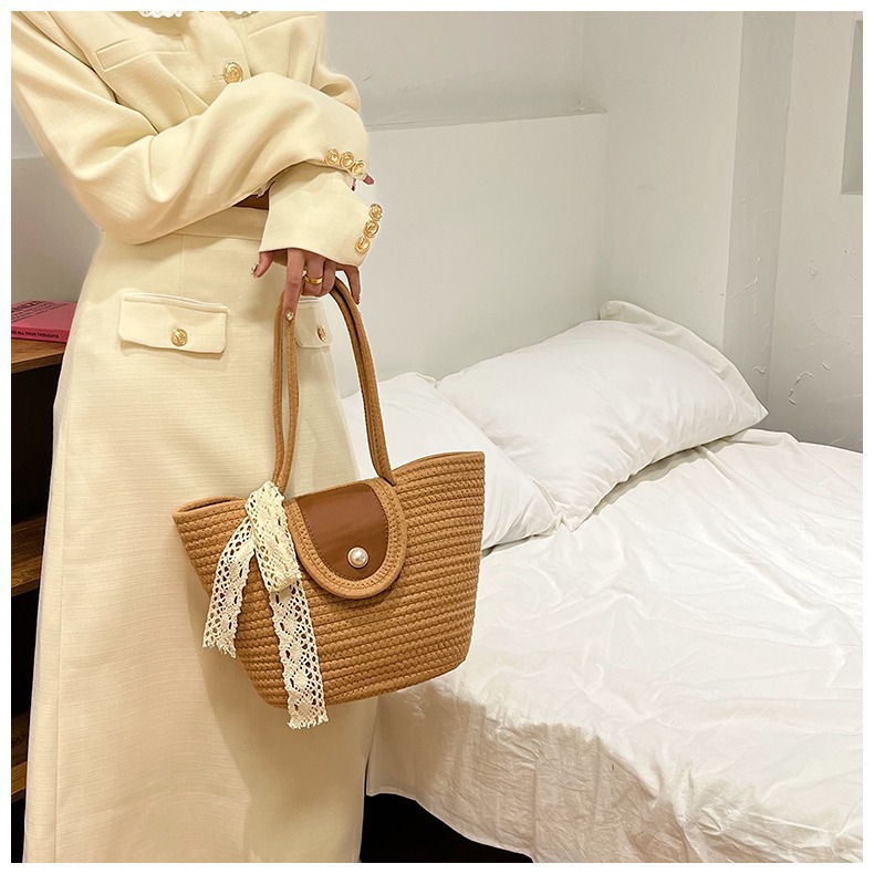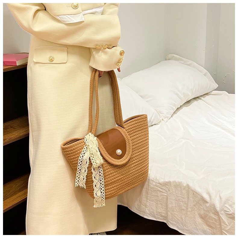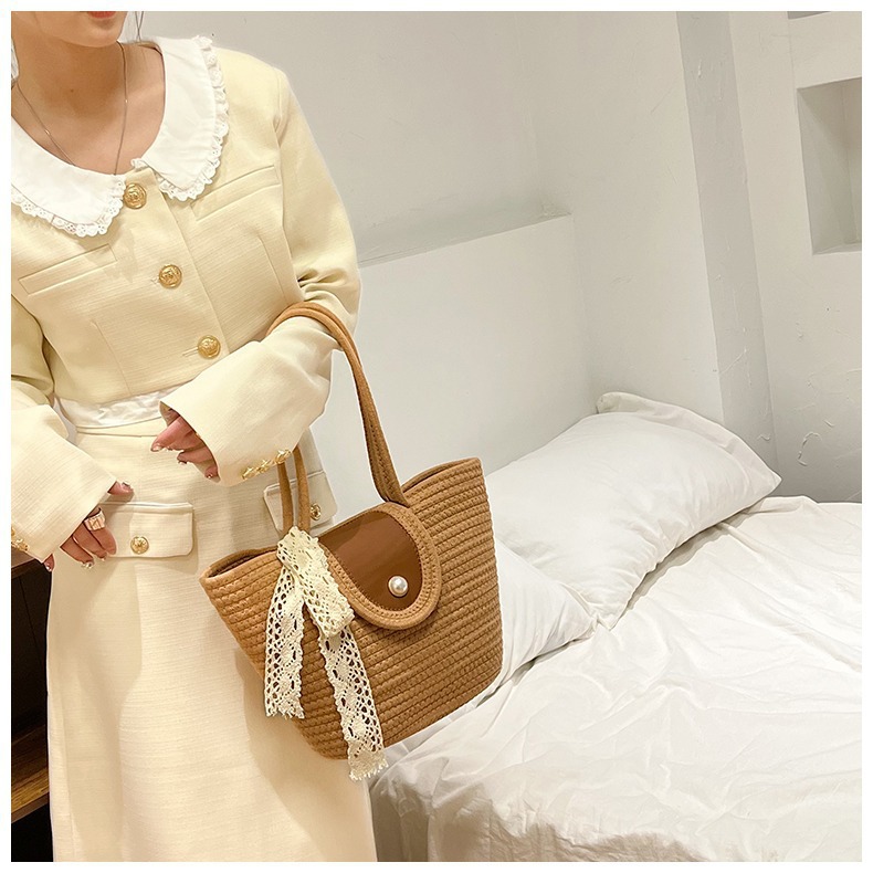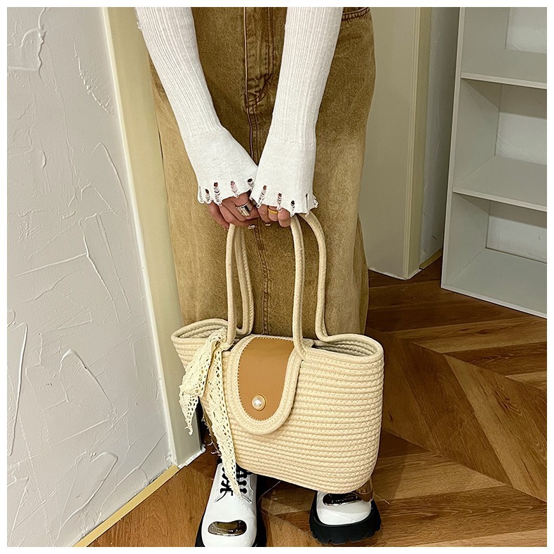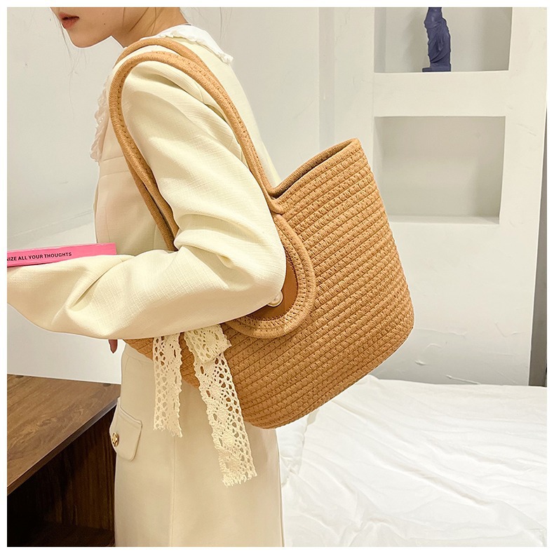 大容量草編みバッグ2024新作女性バッグ夏シングルショルダーバッグ流行編み上げパットバッグビーチバッグ