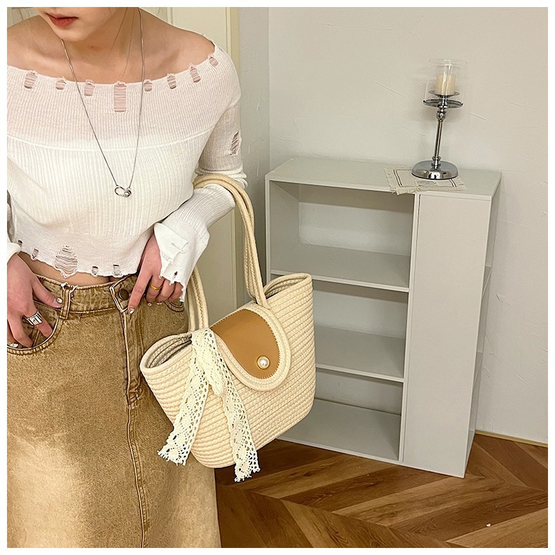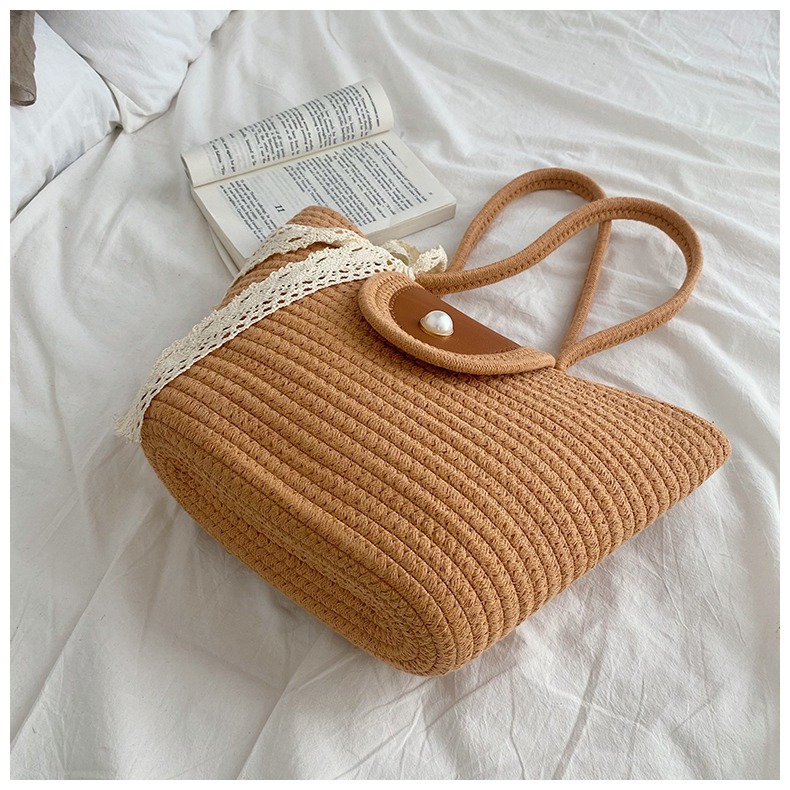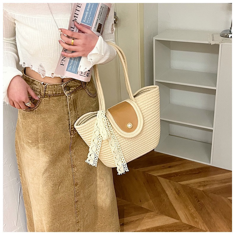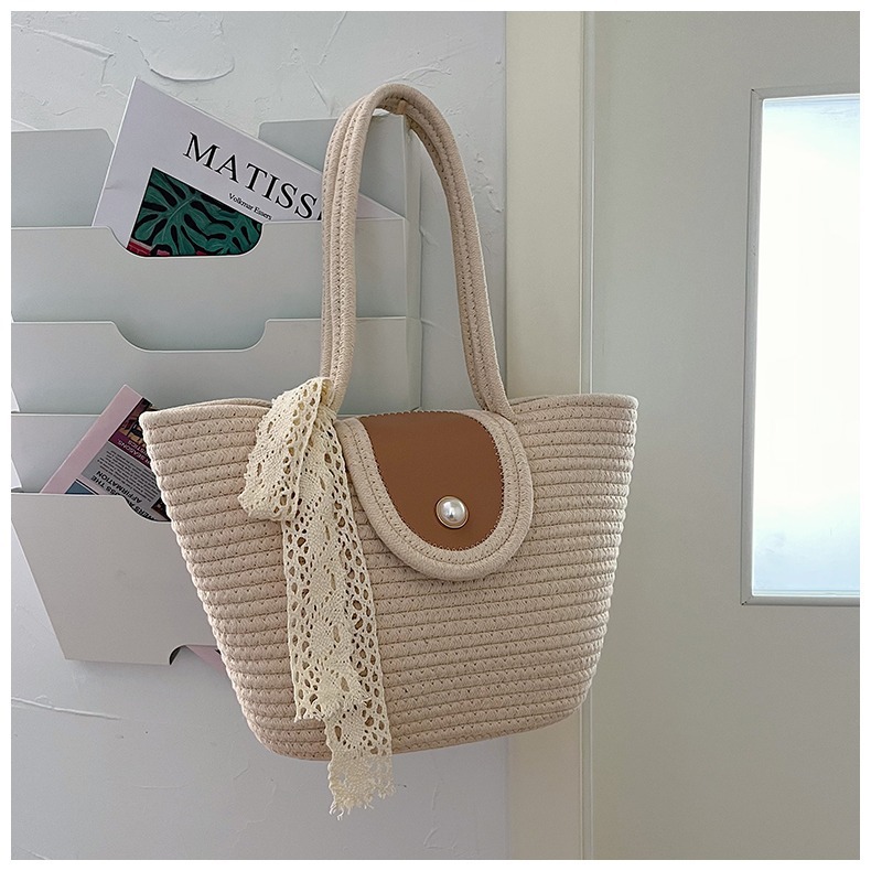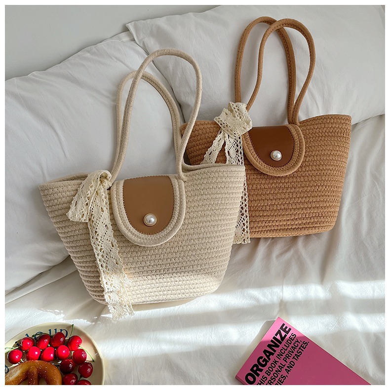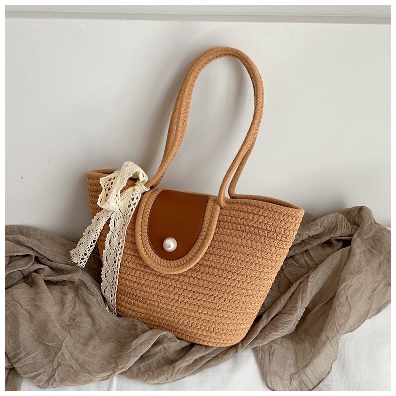 大容量草編みバッグ2024新作女性バッグ夏シングルショルダーバッグ流行編み上げパットバッグビーチバッグ