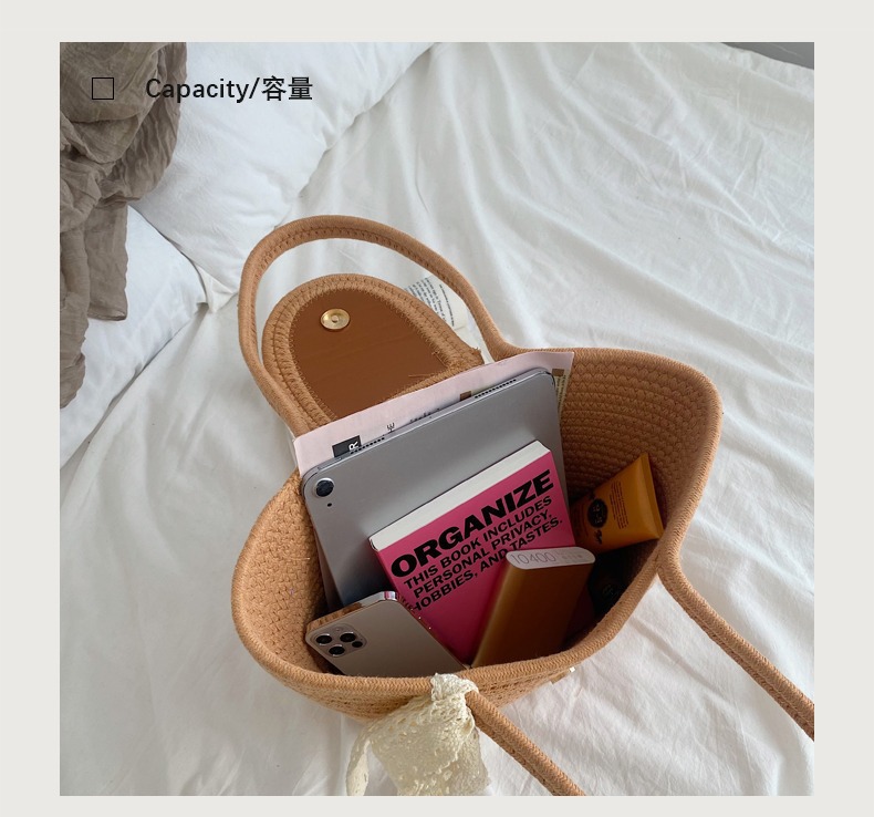 現代のシンプルな綿のひもはかごのデスクトップを整理してごみを整理します。