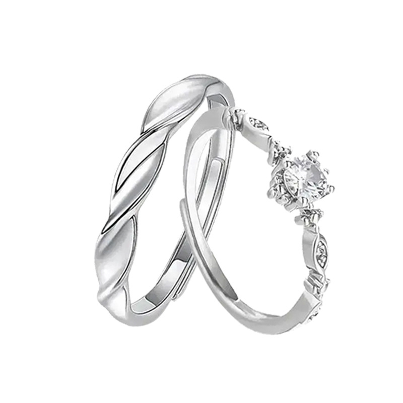 モビウス足銀999カップル指輪男女ファッション百組金四爪ジルコンリング格菱紋ペアリング