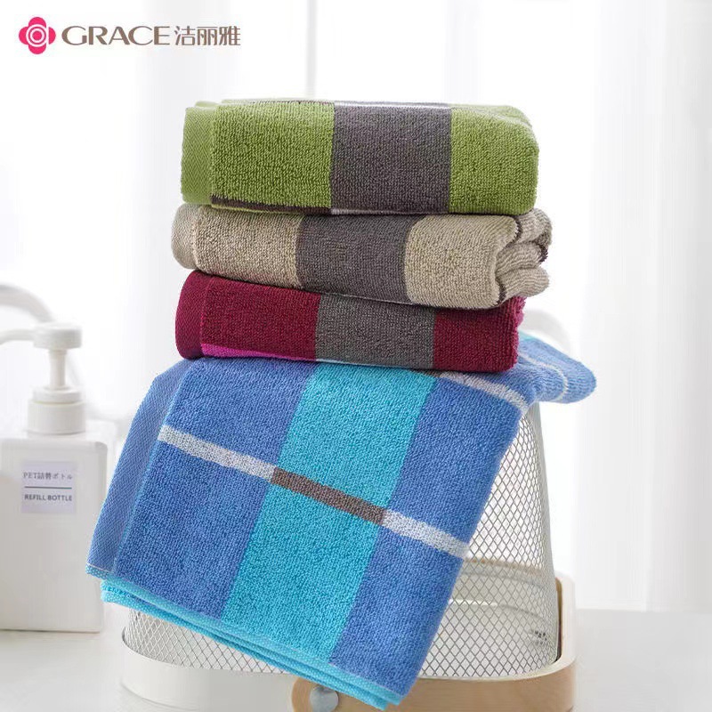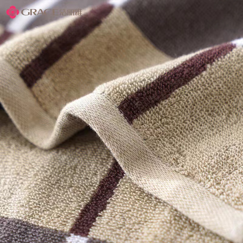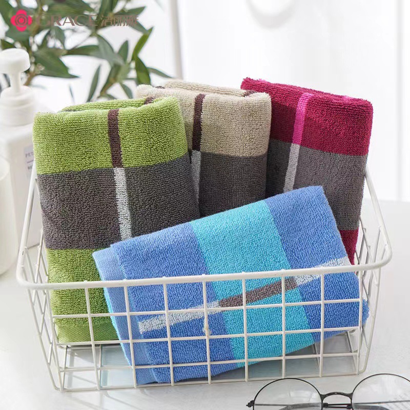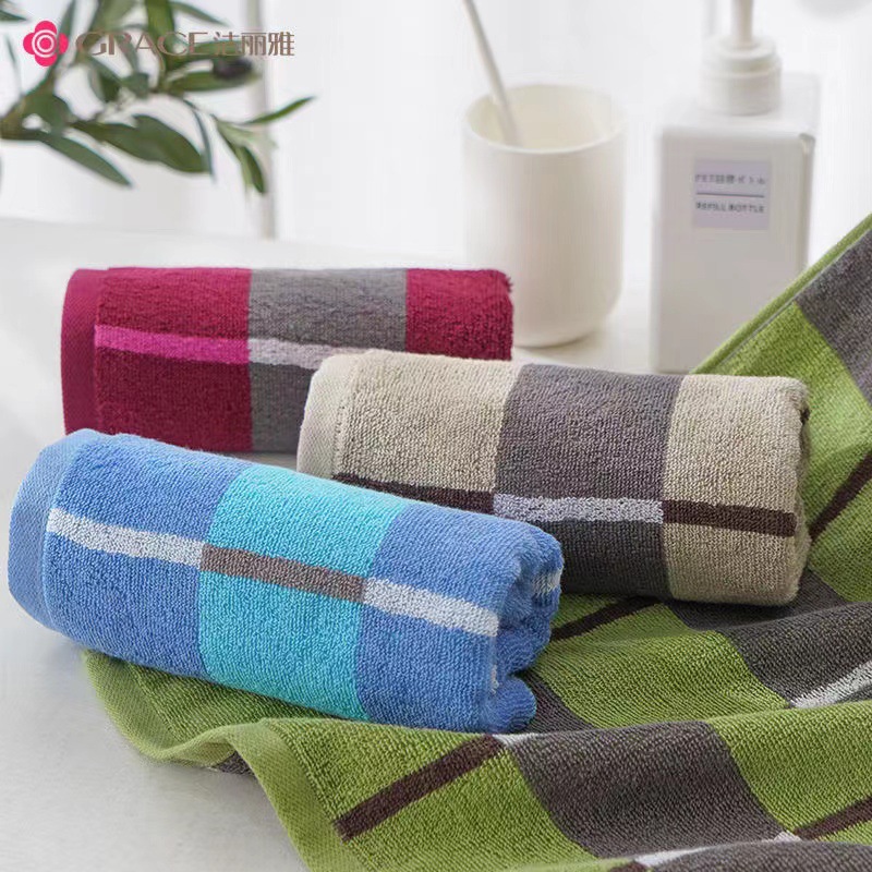 清潔で上品な綿のタオルの格子縞の柔らかい吸水タオルの成人の顔を洗って入浴する家庭用の濃い色のタオルの7185