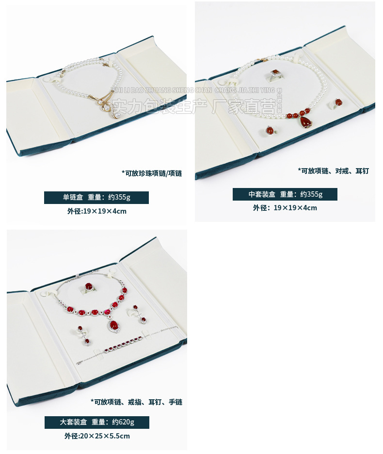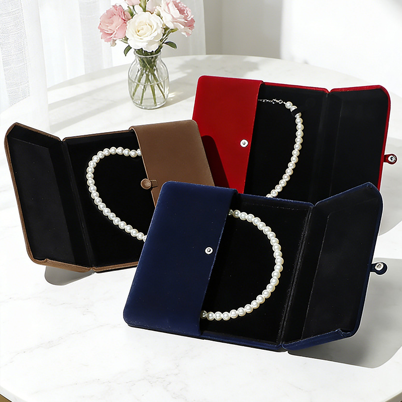 両開きスナップ縦型ベルベットジュエリーボックス
