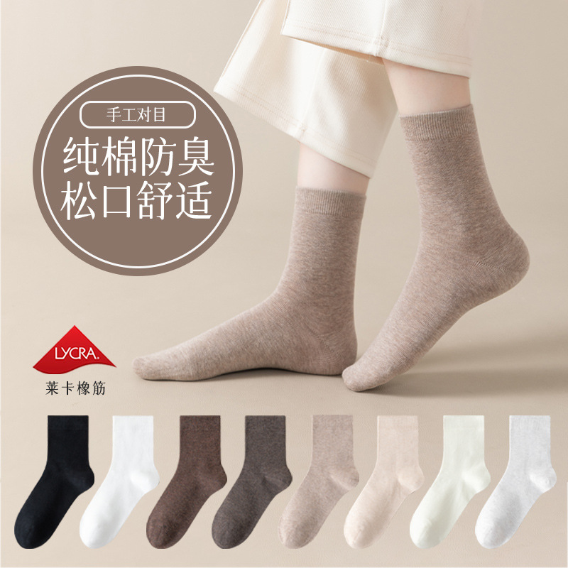 靴下の女性の秋の純綿の無骨の靴下の防臭の綿の日本の純色の月子の靴下の松口の秋冬の中で靴下の女性