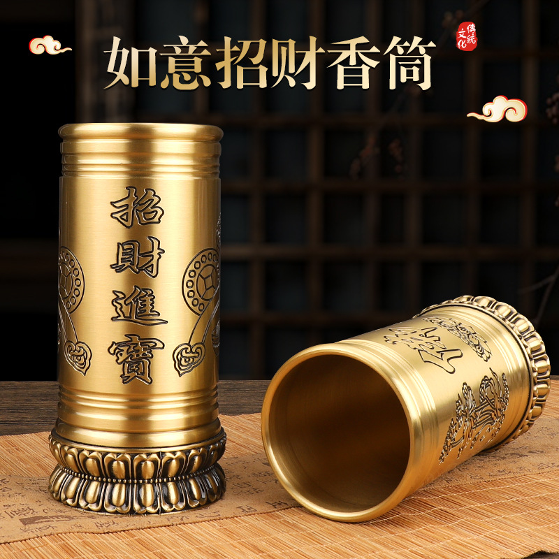 メーカー直販純銅如意招財入宝妙蓮生香筒装香家庭用挿香線香竹串筆立て