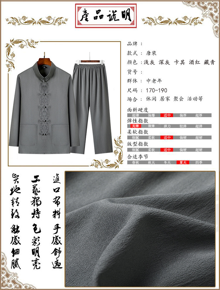 父の秋の服のコートの中で老年の唐は男性のジャケットの中国風のおじいさんのスーツの春秋のタイプの老人の服の70歳を詰めます。