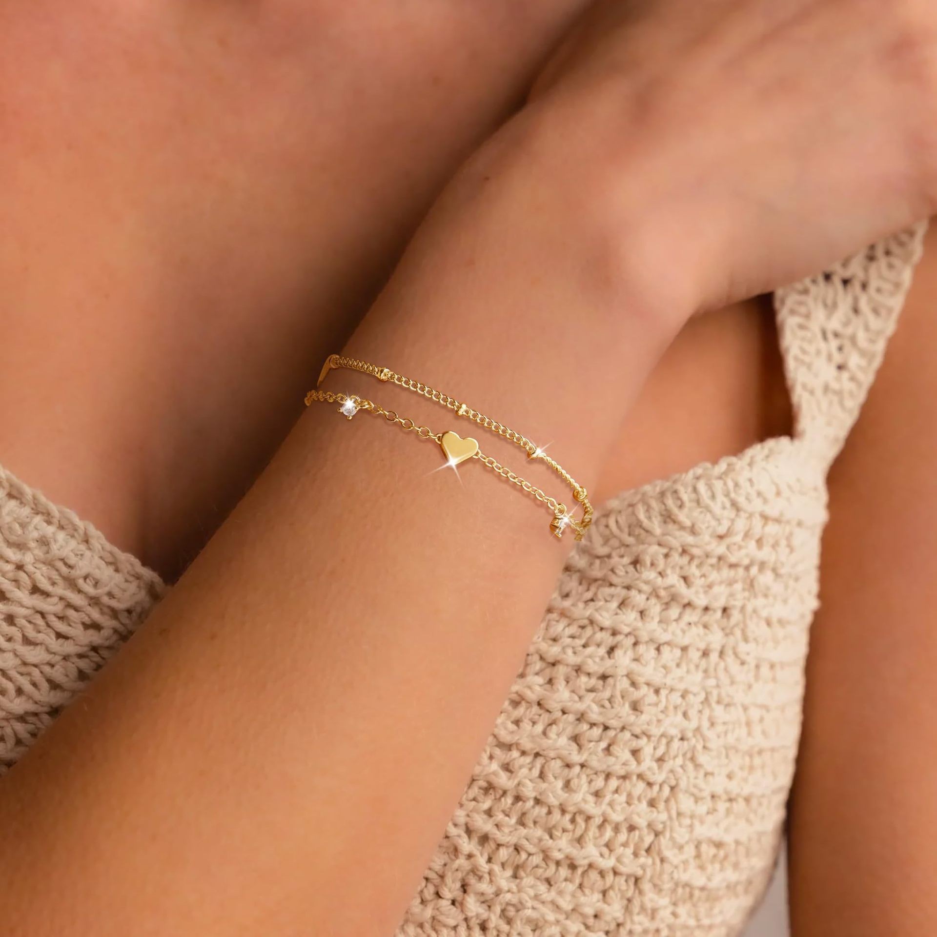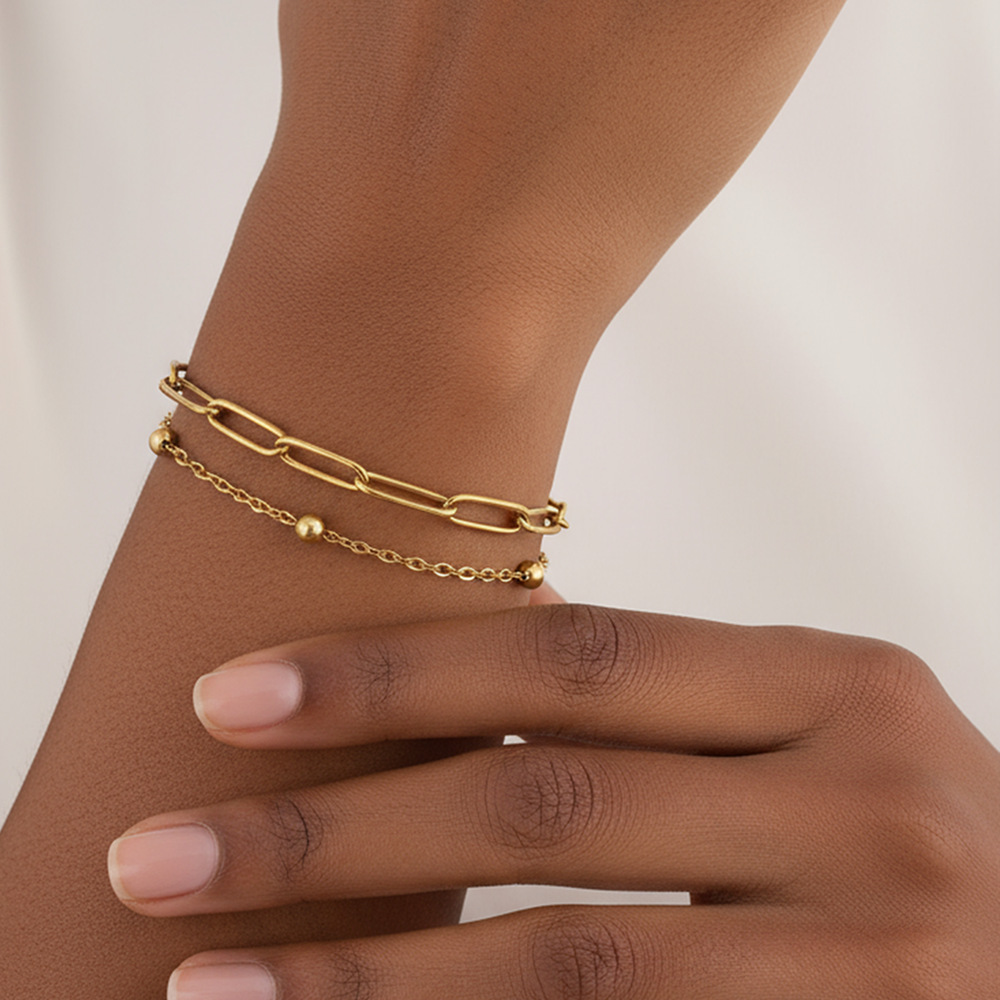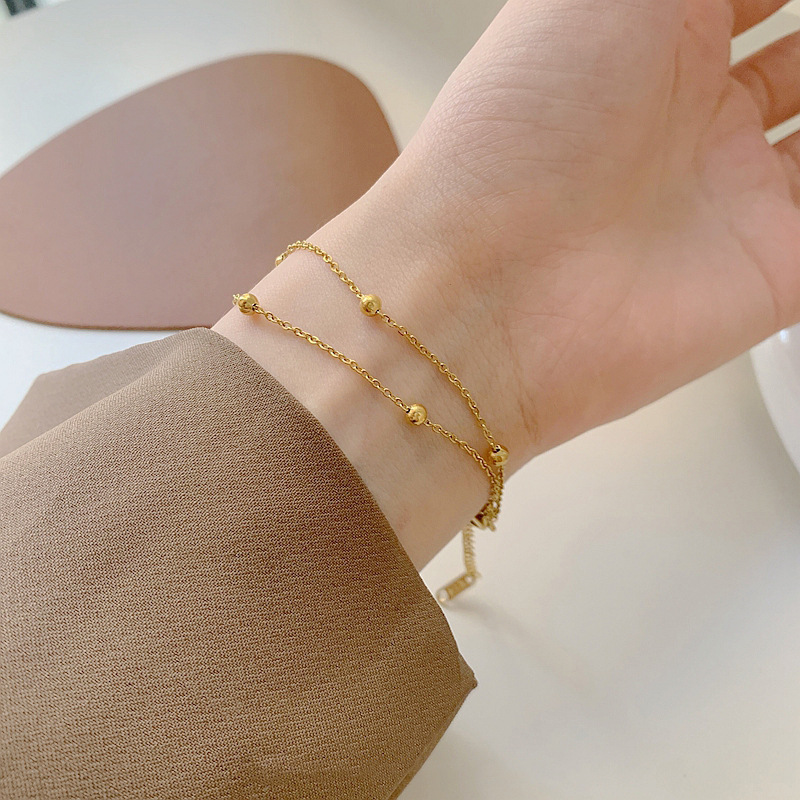 新款欧美跨境爆款双层手链不锈钢镀18K金简约百搭链条风饰品手链
